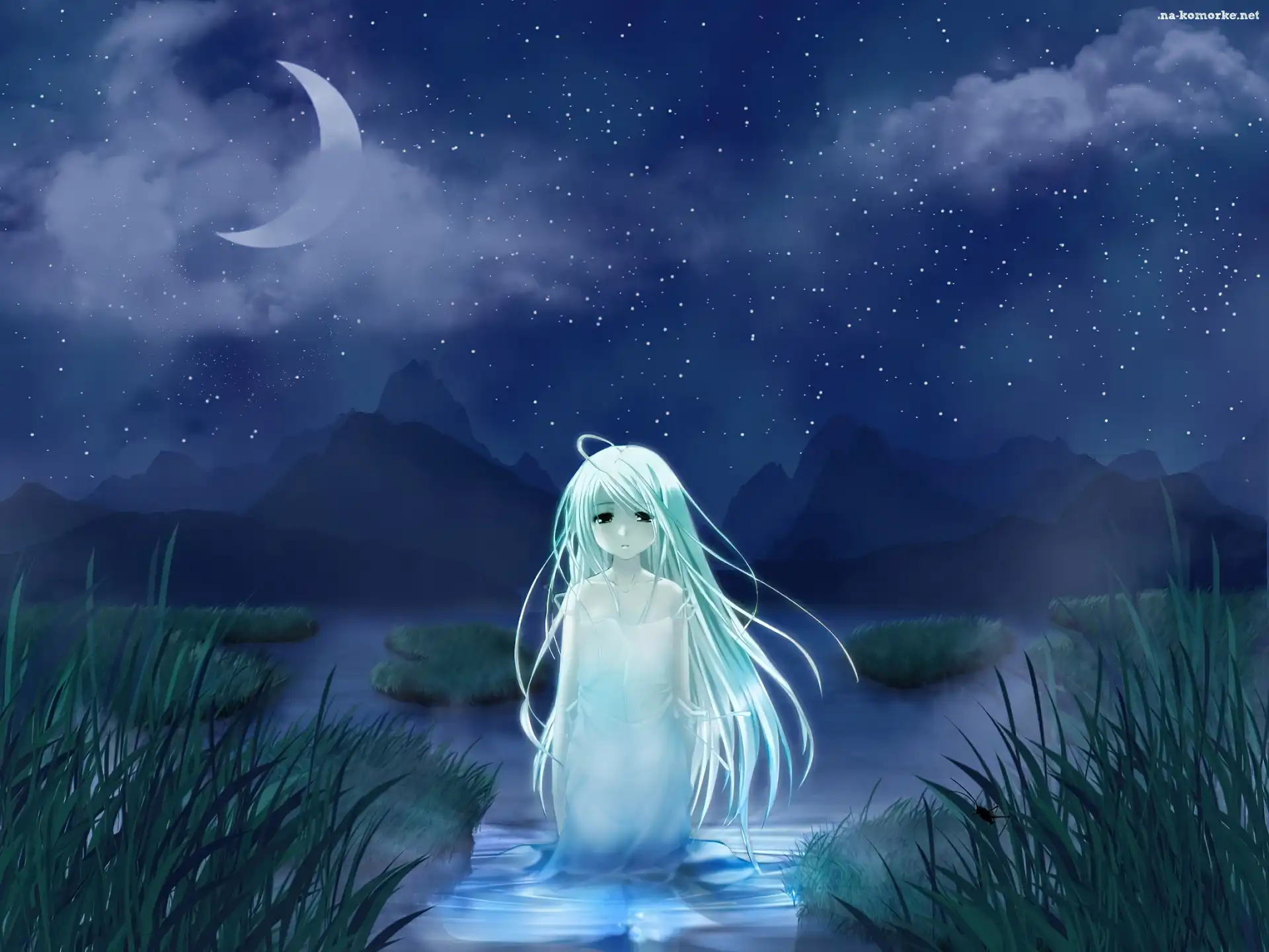 woda, noc, White Clarity, dziewczynka na Komórkę