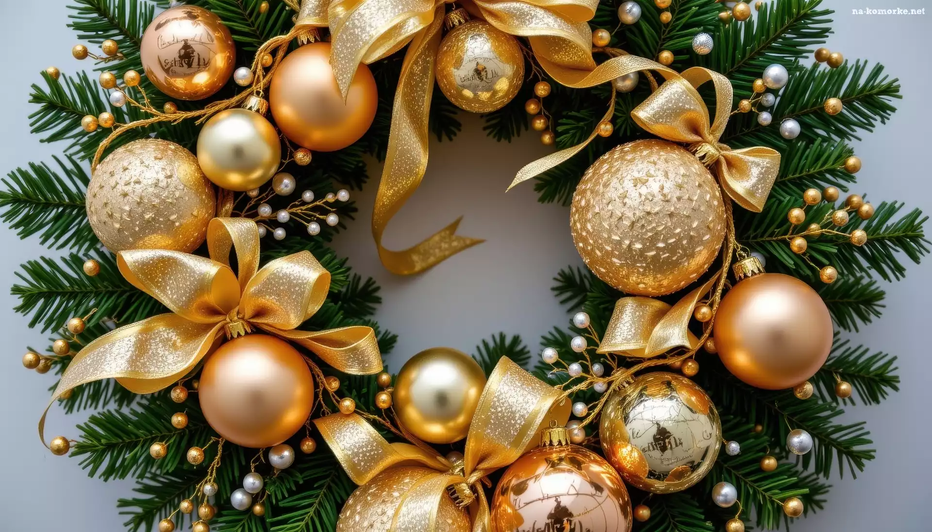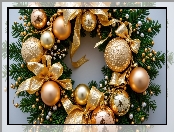 Złote, Gałązki, Boże Narodzenie, AI, Bombki, Kokardy, Wianek na Komórkę