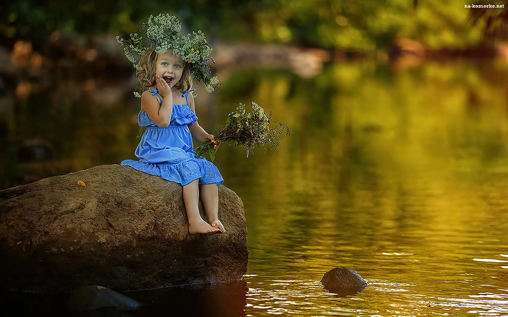 Wianek, Radosna, Dziewczynka, Niebieska, Sukienka na Komórkę