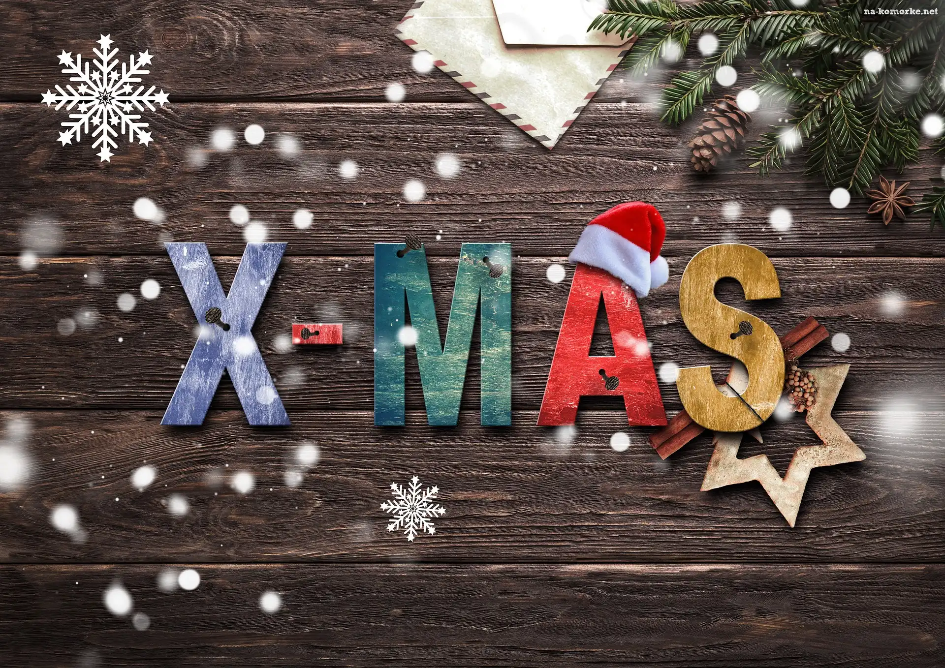 Świąteczna, Świerk, Gwiazdki, Dekoracja, Napis, Xmas, Deski na Komórkę