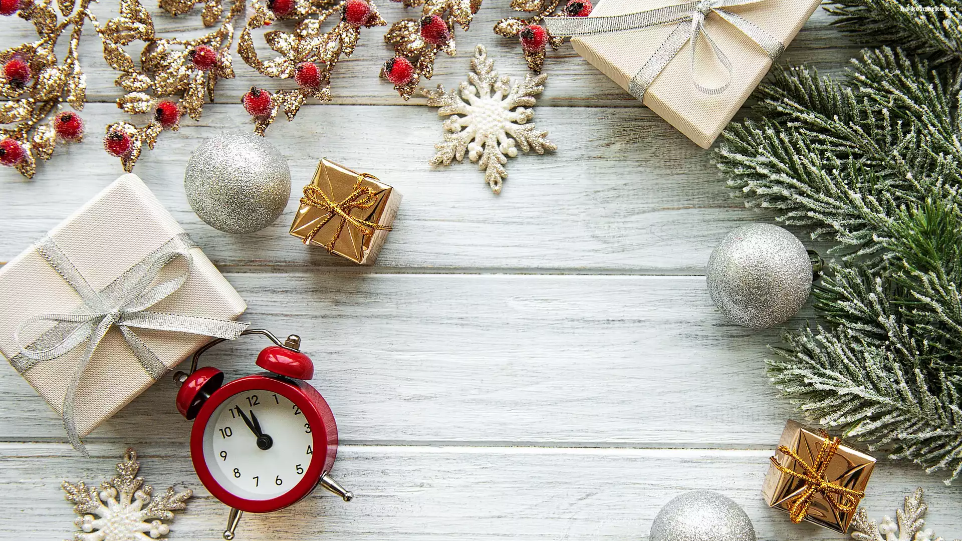 Świąteczna, Bombki, Śnieżynki, Kompozycja, Zegarek, Prezenty, Gałązki na Komórkę