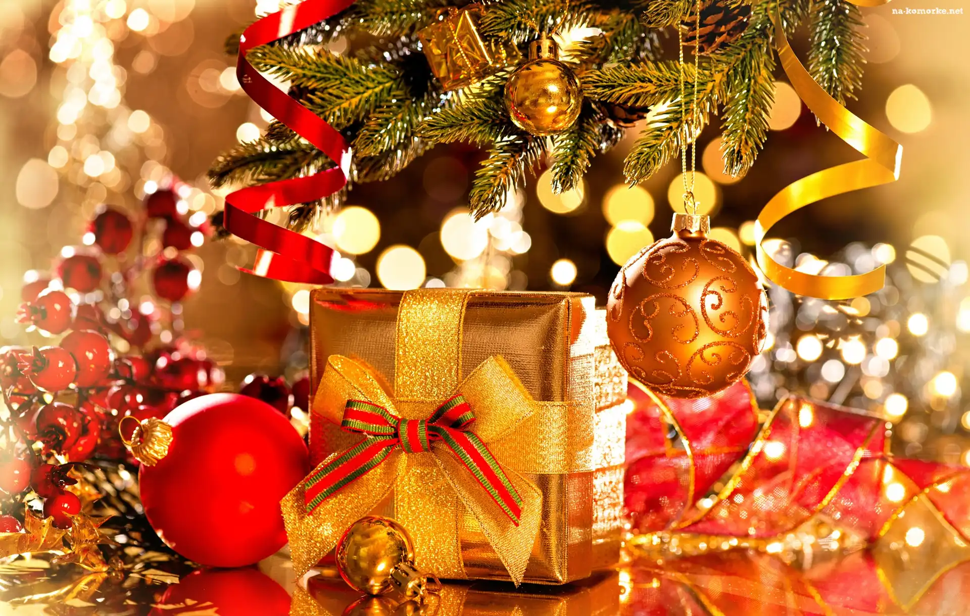 Bombki, Świąteczny, Boże Narodzenie, Kompozycja, Prezent, Wstążka na Komórkę