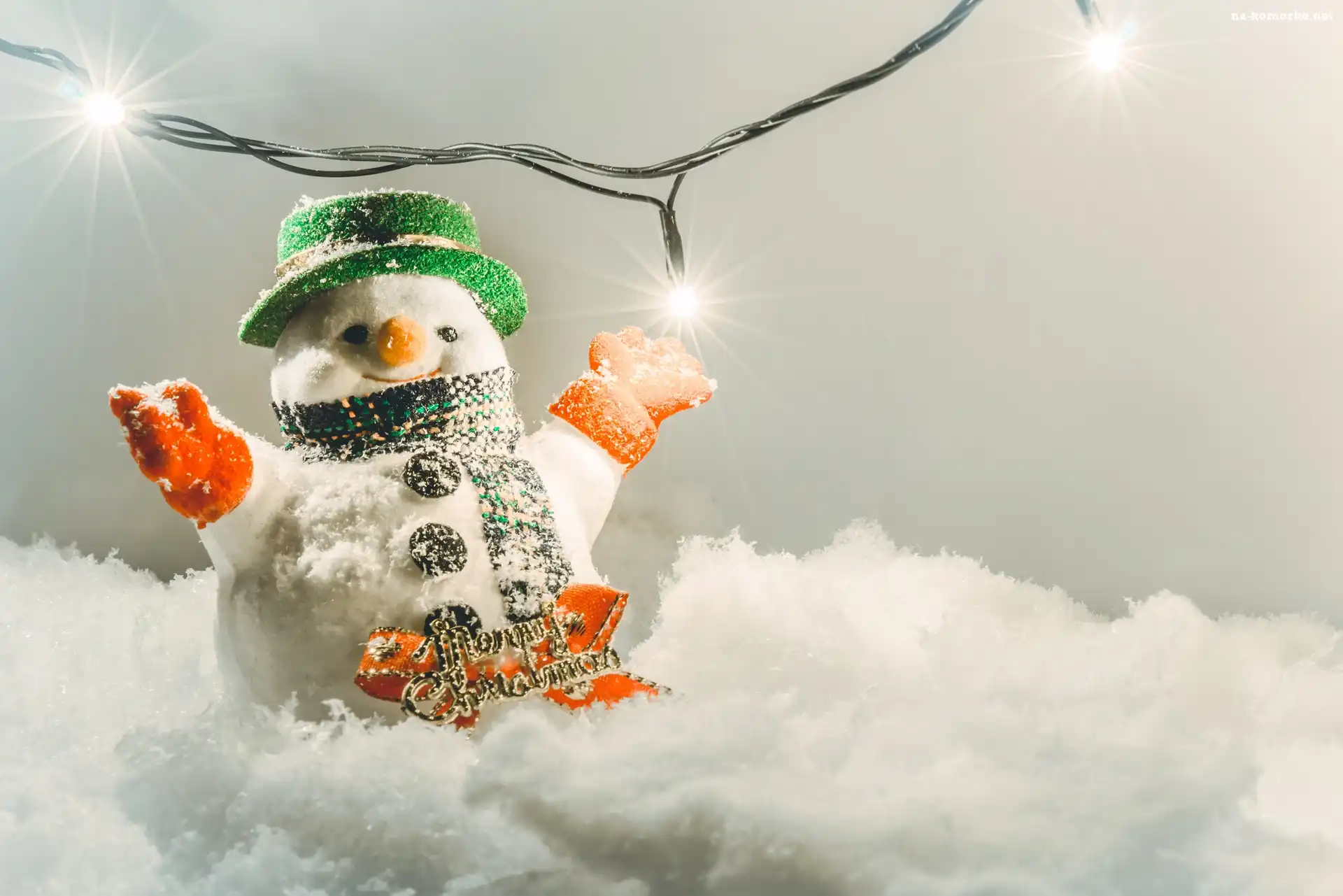 Światełka, Napis, Boże Narodzenie, Śnieg, Bałwanek na Komórkę