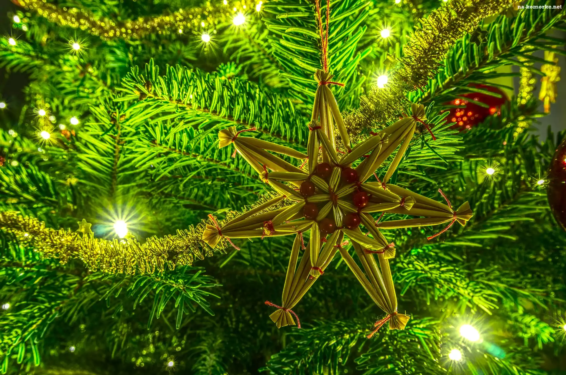 Światełka, Dekoracja, Świąteczna, Gwiazdka, Choinka, Słomiana na Komórkę