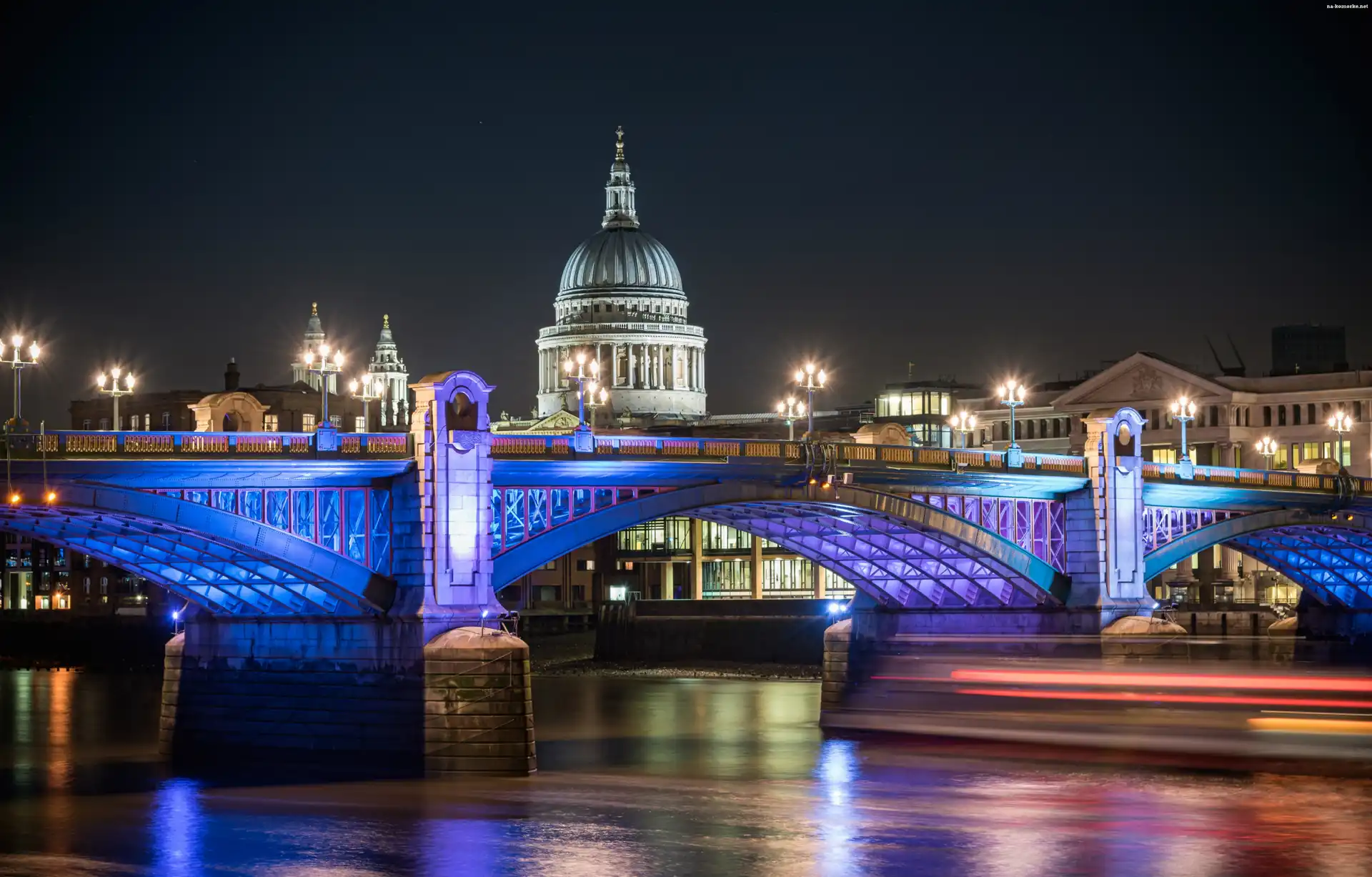 Światła, Wielka Brytania, Londyn, Rzeka, Most na Komórkę