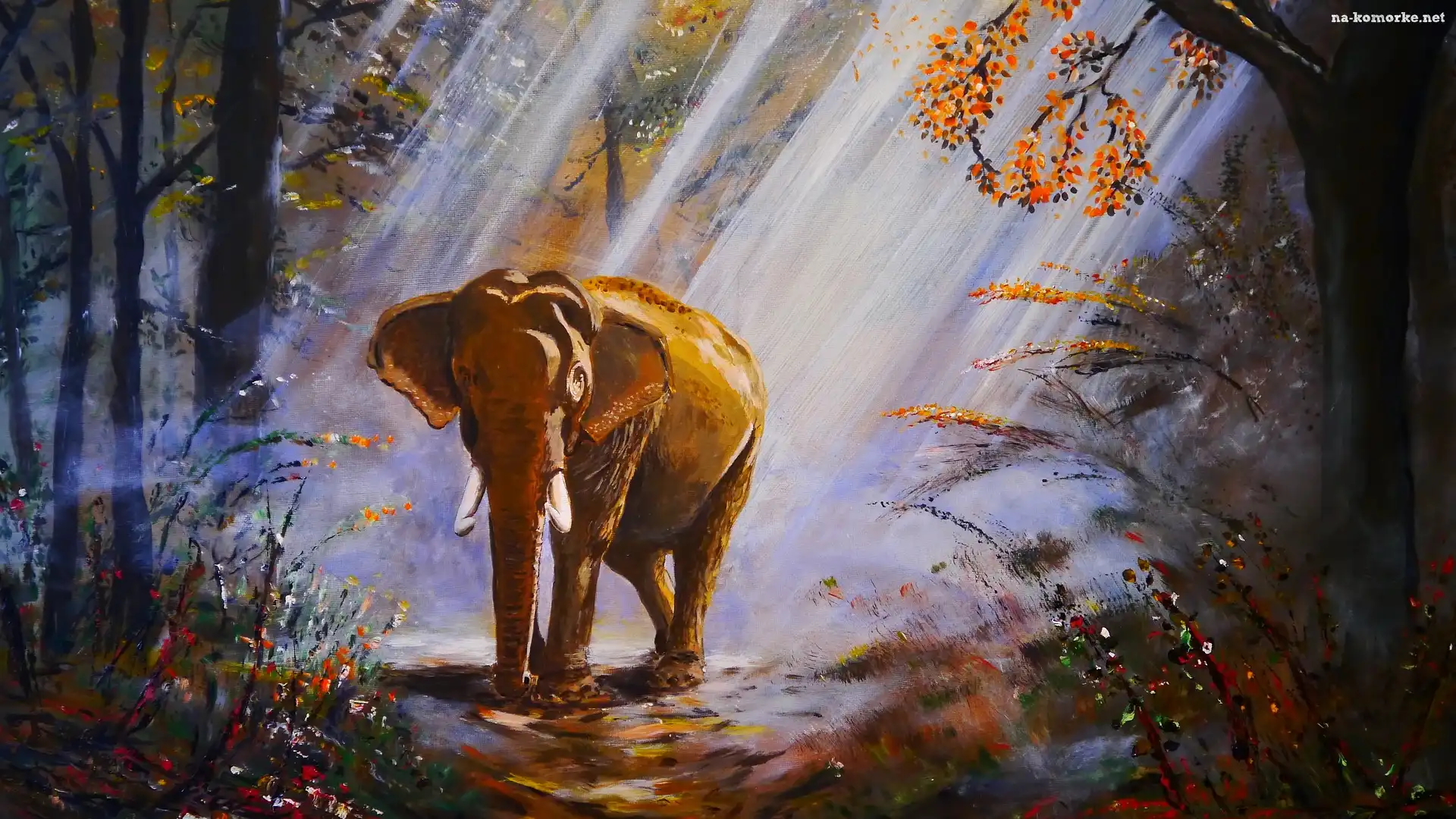 Malarstwo, Światło, Drzewa, Obraz, Słoń, Las, Droga na Komórkę