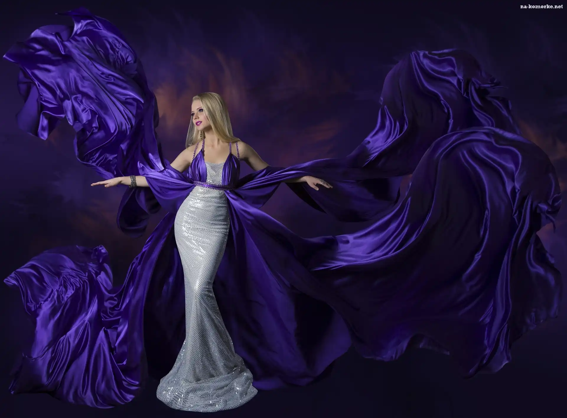 Wiatr, Kobieta, Blondynka, Makijaż, Sukienka na Komórkę