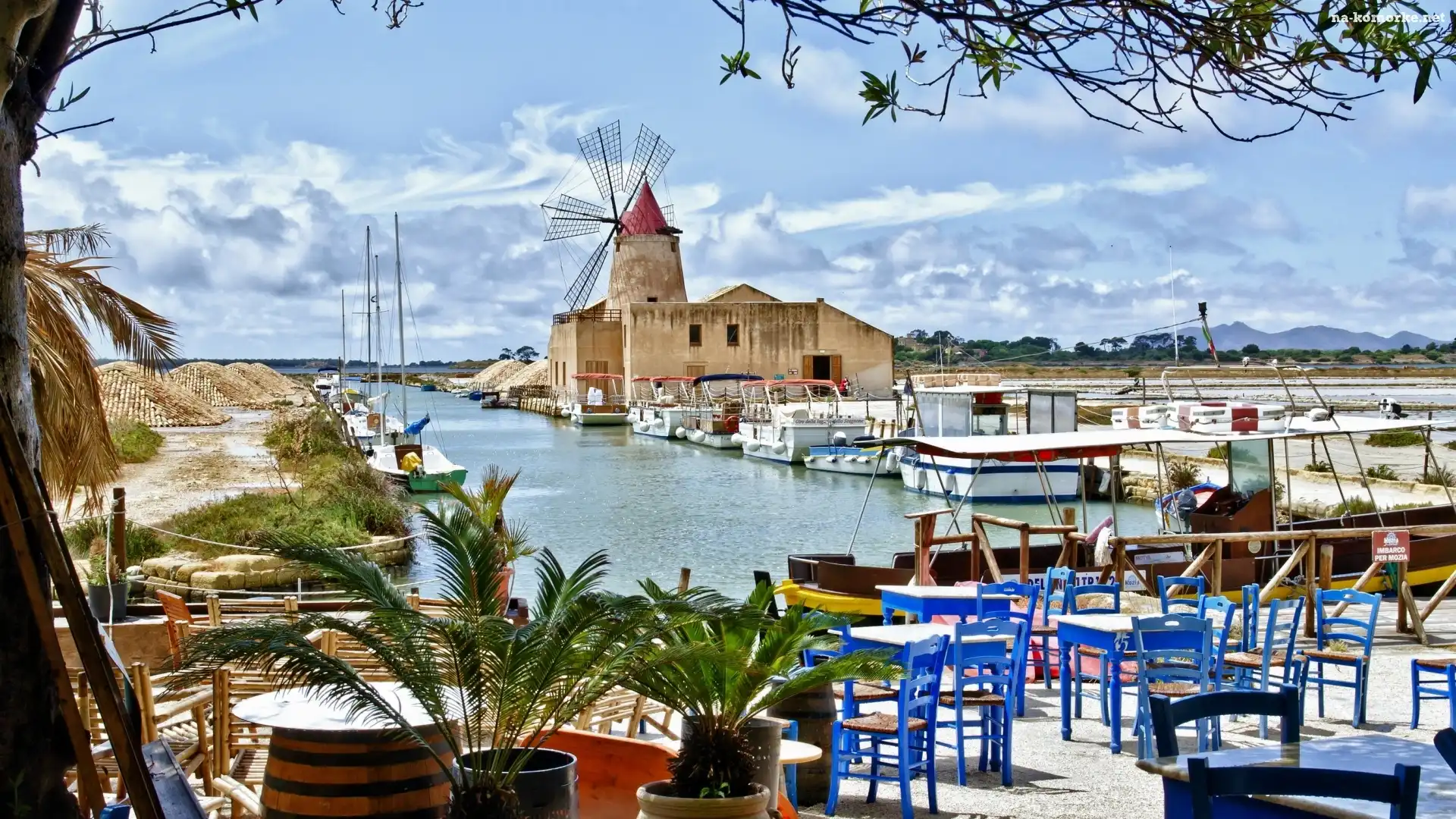 Wiatrak, Włochy, Restauracja, Sycylia na Komórkę