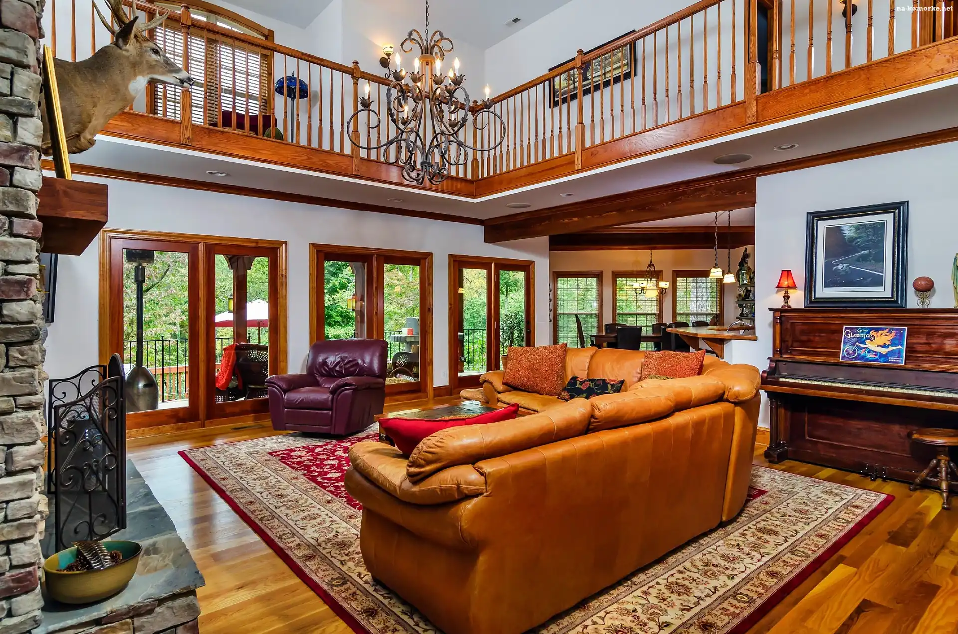 Widok, Dom, Salon, Kanapa, Okno na Komórkę
