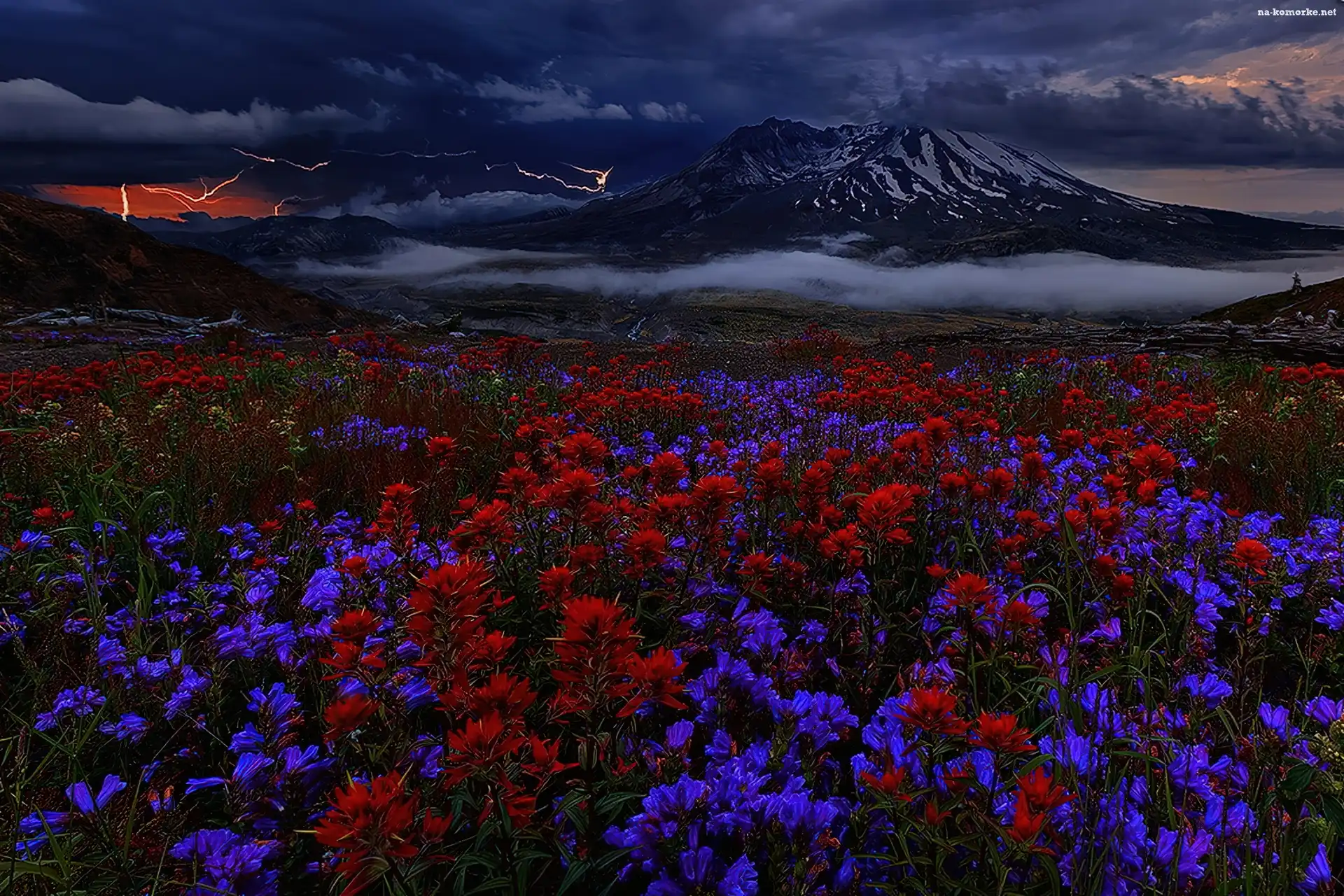 Widok, Góry, Mgła, Kwiaty, Apokaliptyczny na Komórkę