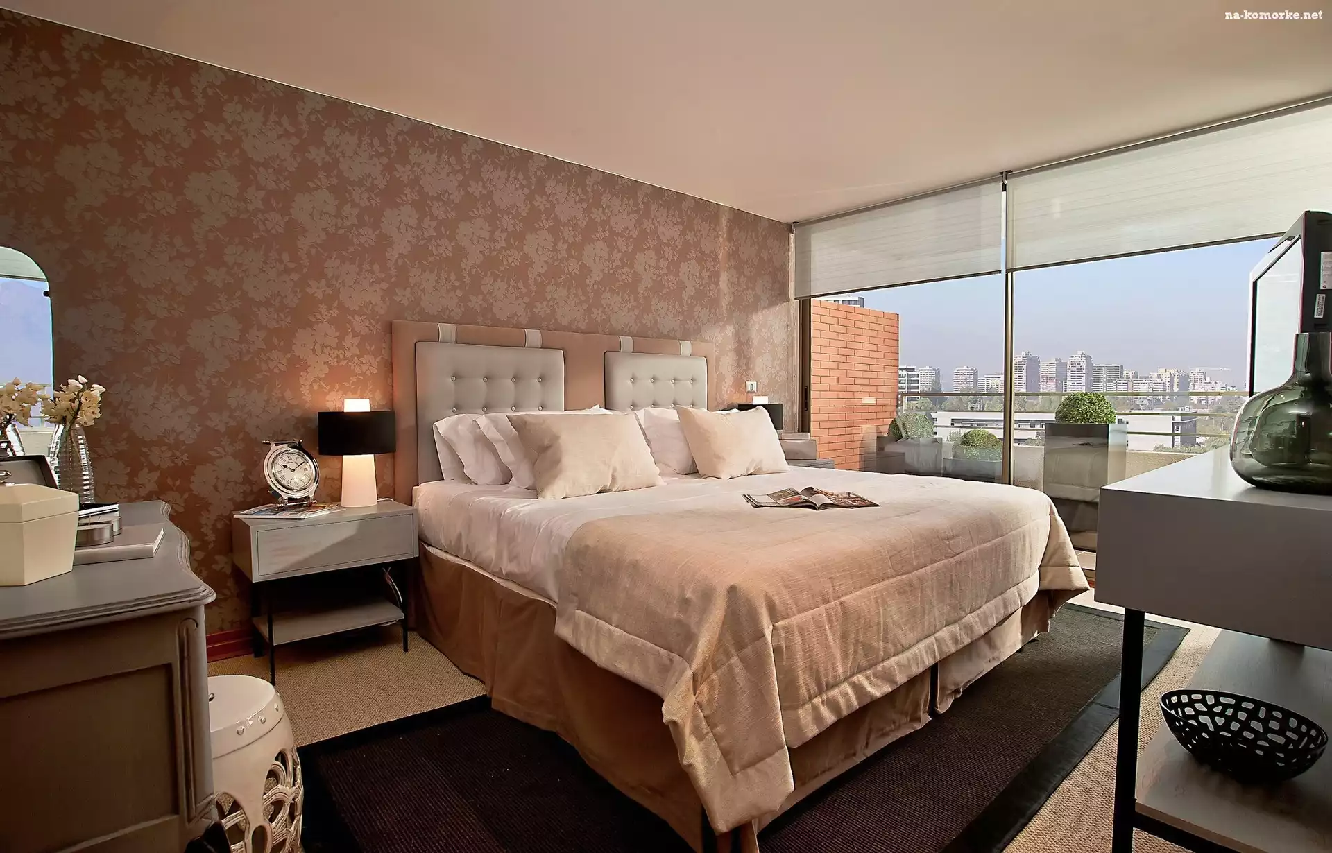 Widok, Sypialnia, Dom, Miasta, Okno, Panorama na Komórkę