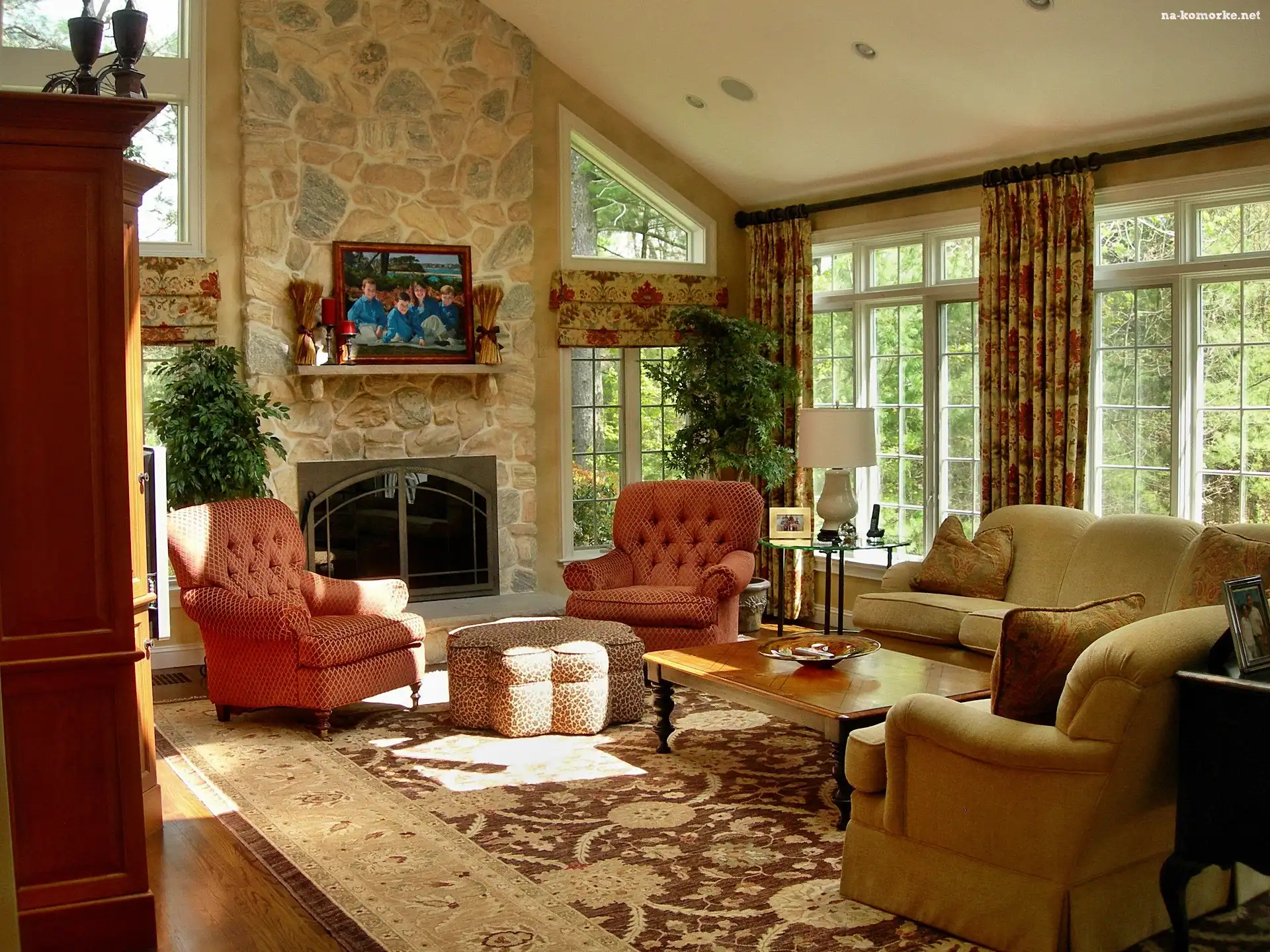 Widok, Dom, Przytulny, Salon, Okno na Komórkę