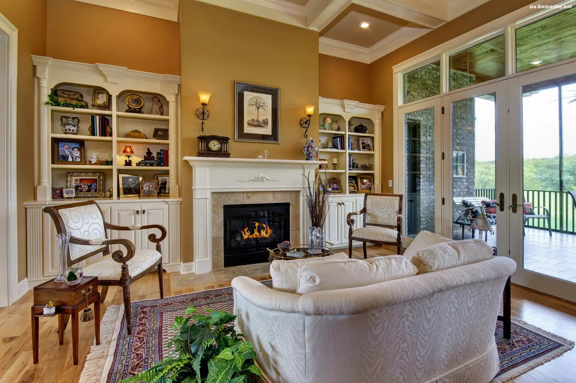 Widok, Dom, Salon, Sofa, Okno na Komórkę