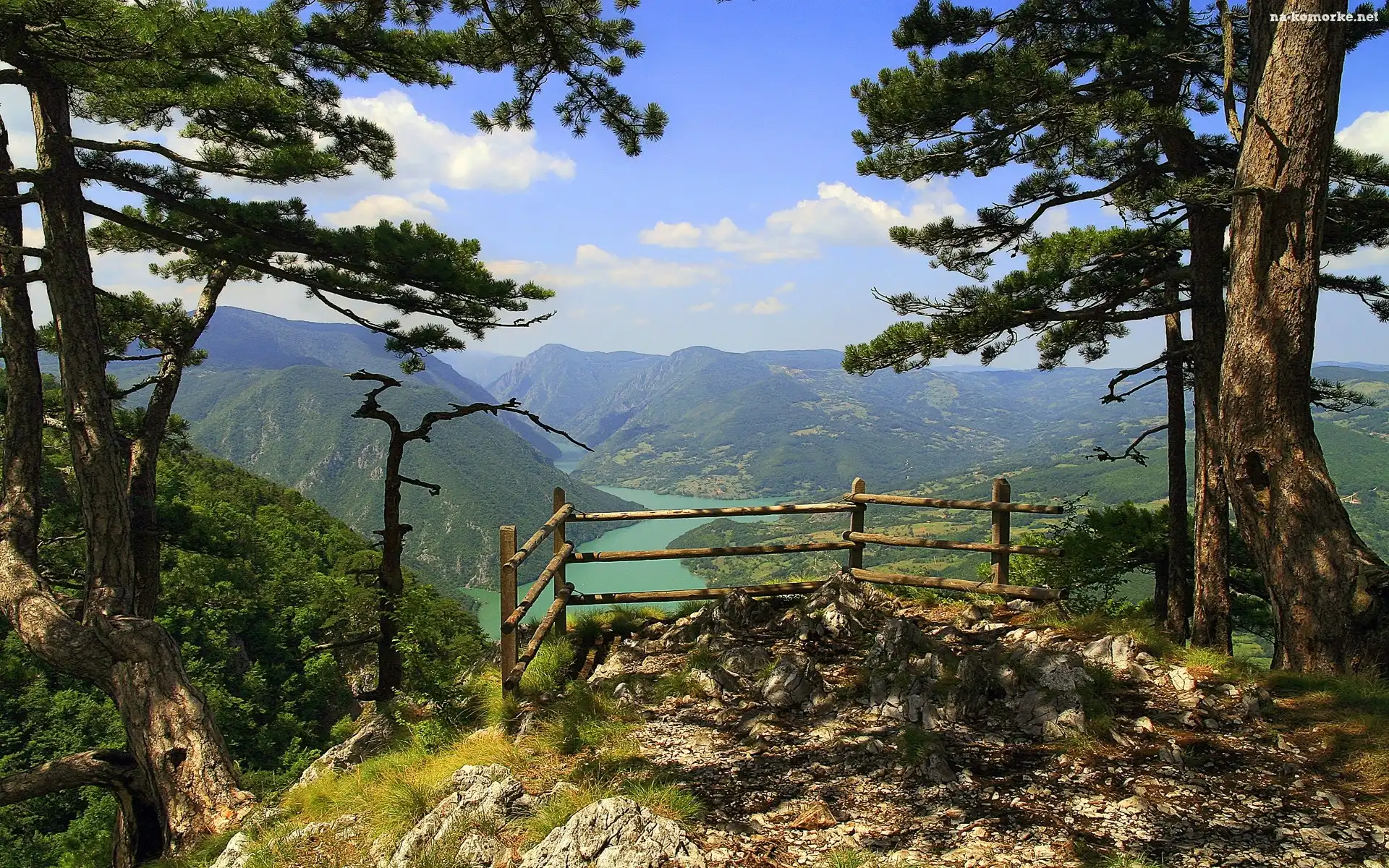 Widokowy, Rzeka, Góry, Drzewa, Punkt na Komórkę