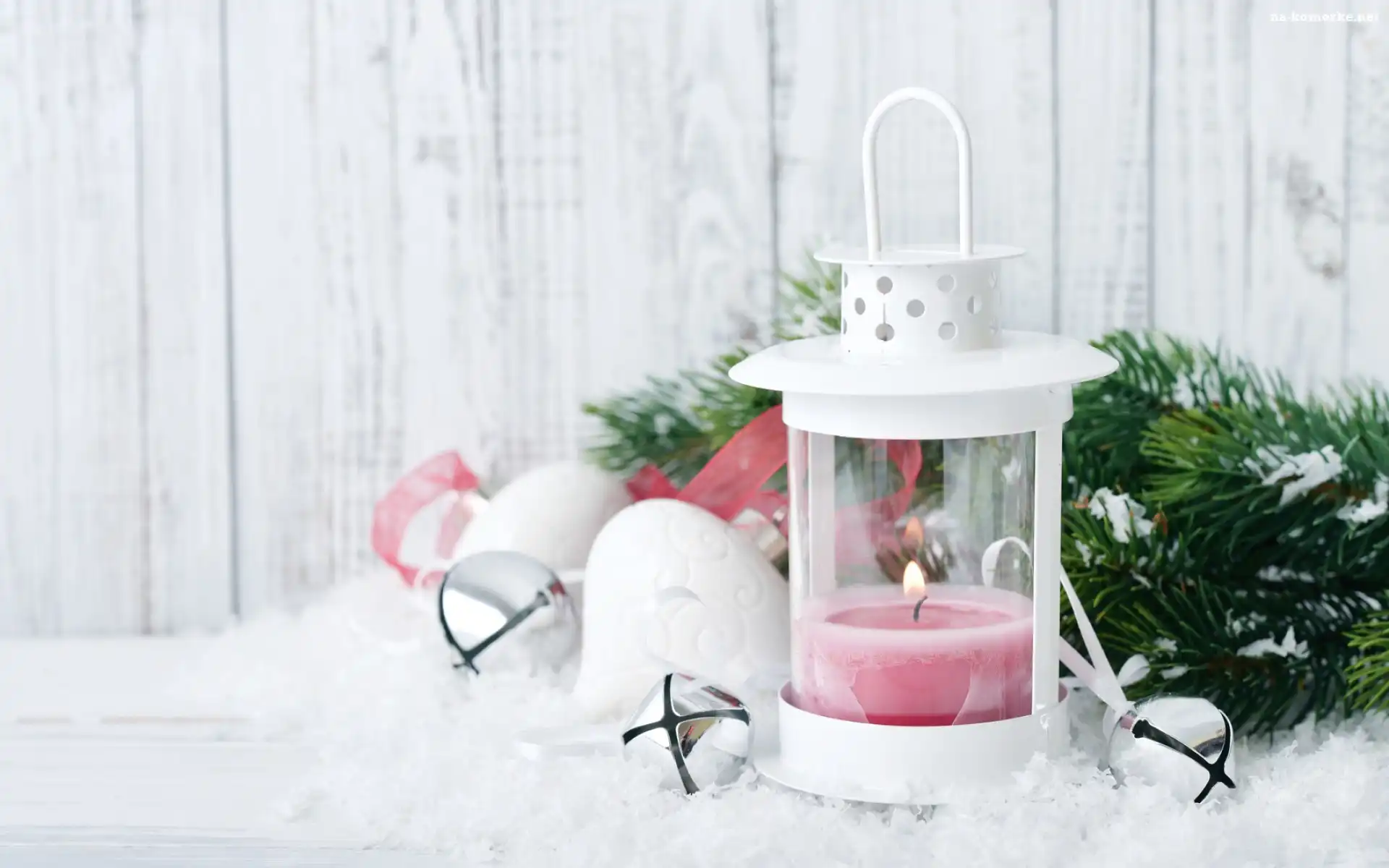 Kompozycja, Lampion, Biały, Świąteczna, Deski, Świeczka, Ozdoby, Boże Narodzenie, Bombki, Różowa, Gałązki na Komórkę |