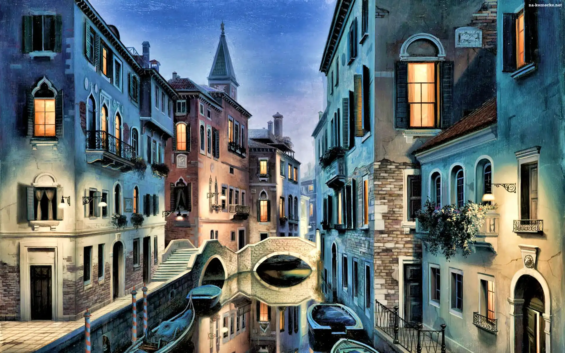 Wieczór, Wenecja, Domy, Kanał, Gondole na Komórkę