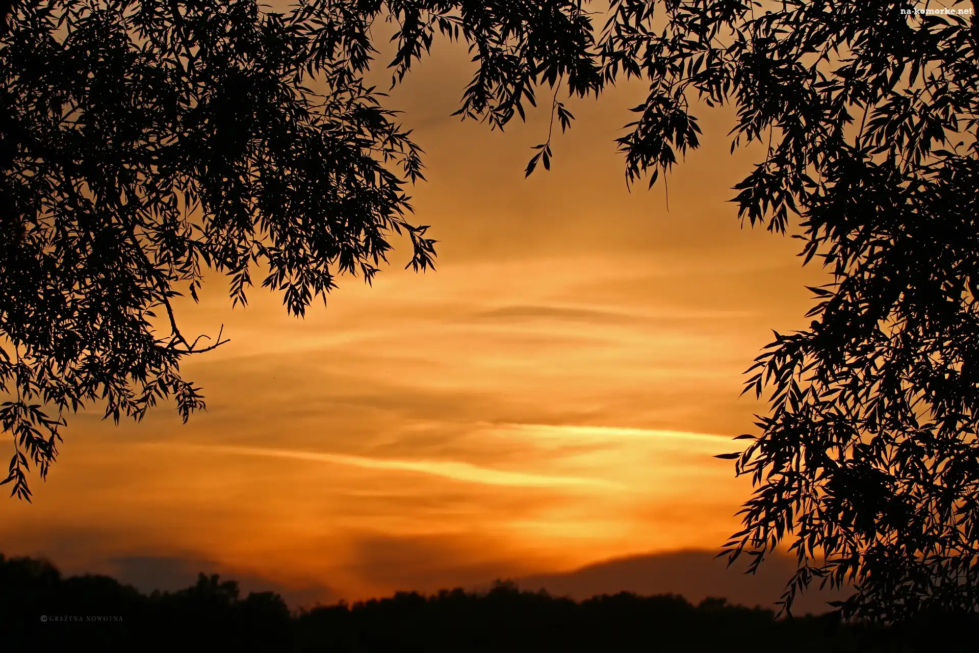 Liście, Wieczór, Niebo na Komórkę