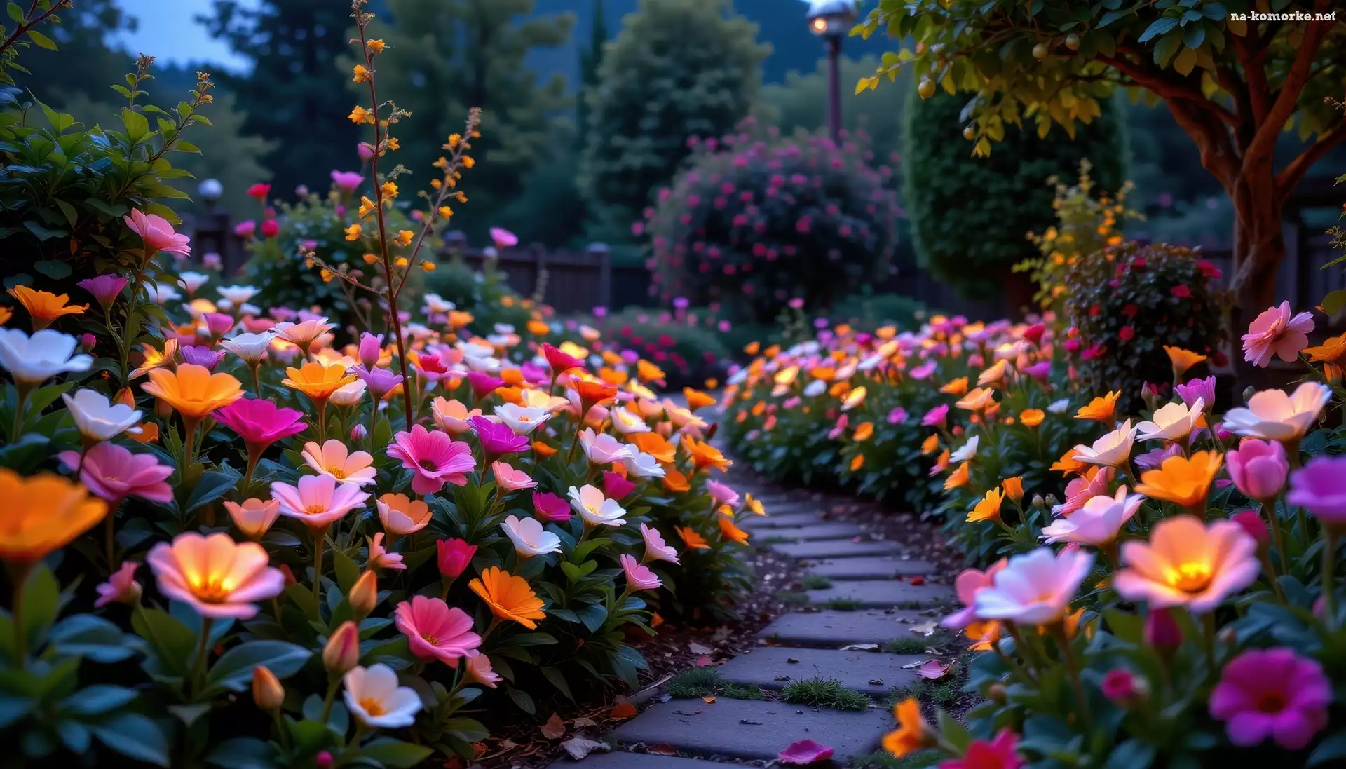 Ogród, Grafika, Kwiaty, Wieczór na Komórkę