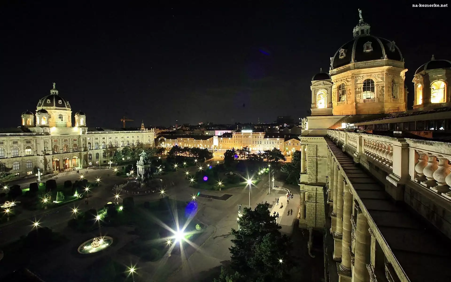 Wiedeń, Budynki, Nocą, Oświetlone na Komórkę