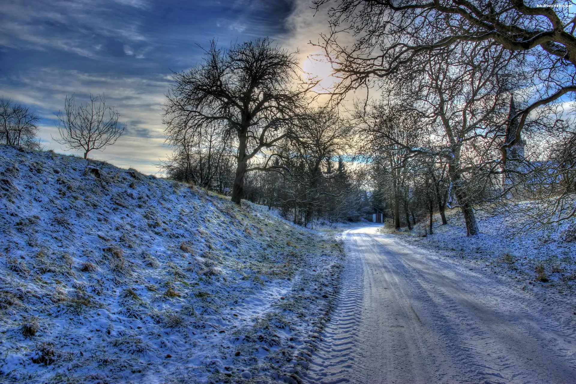 Wiejska, Drzewa, Droga, Kościół na Komórkę