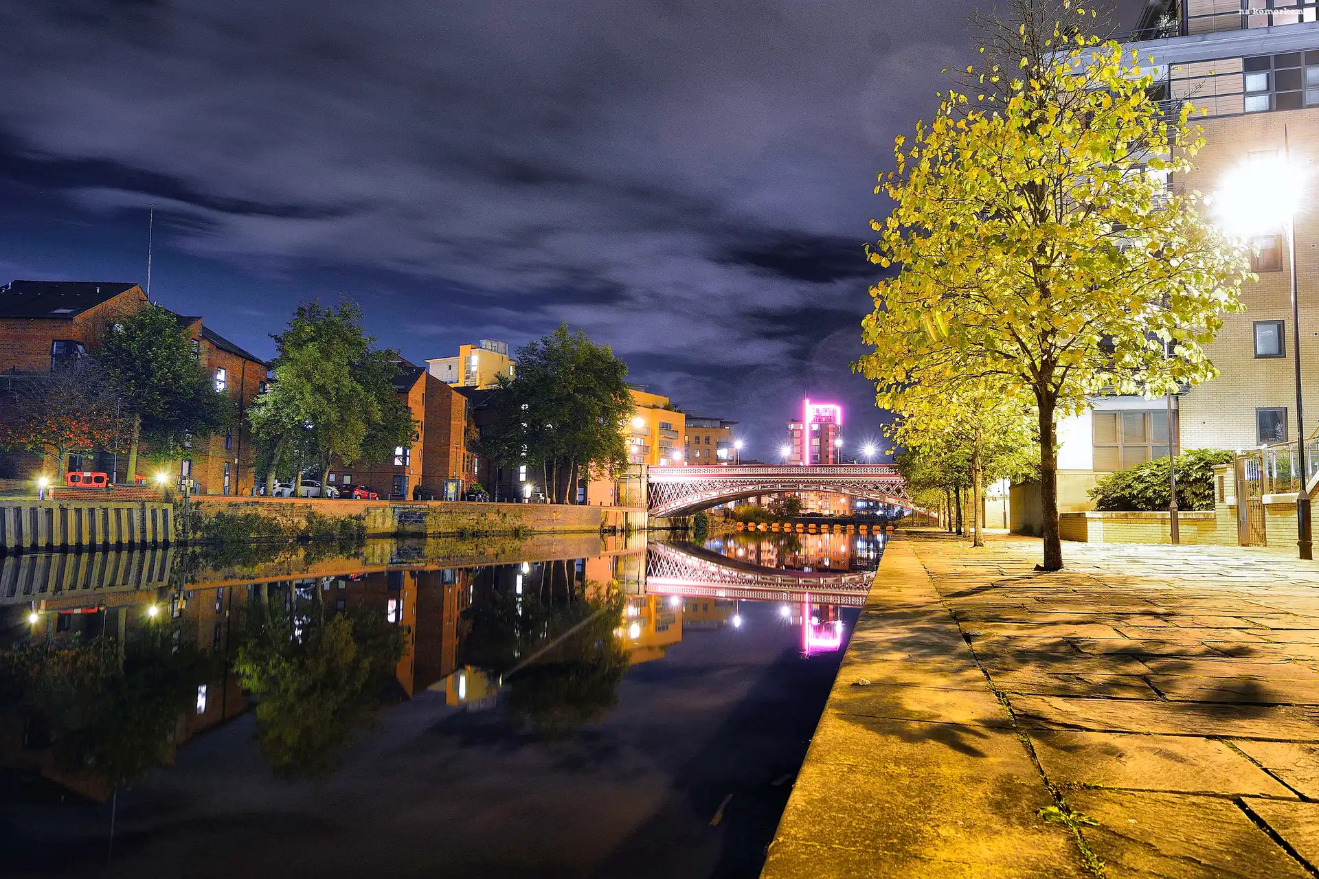 Dom, Wielka Brytania, Leeds, Most Rzeka, Noc, Rzeka na Komórkę