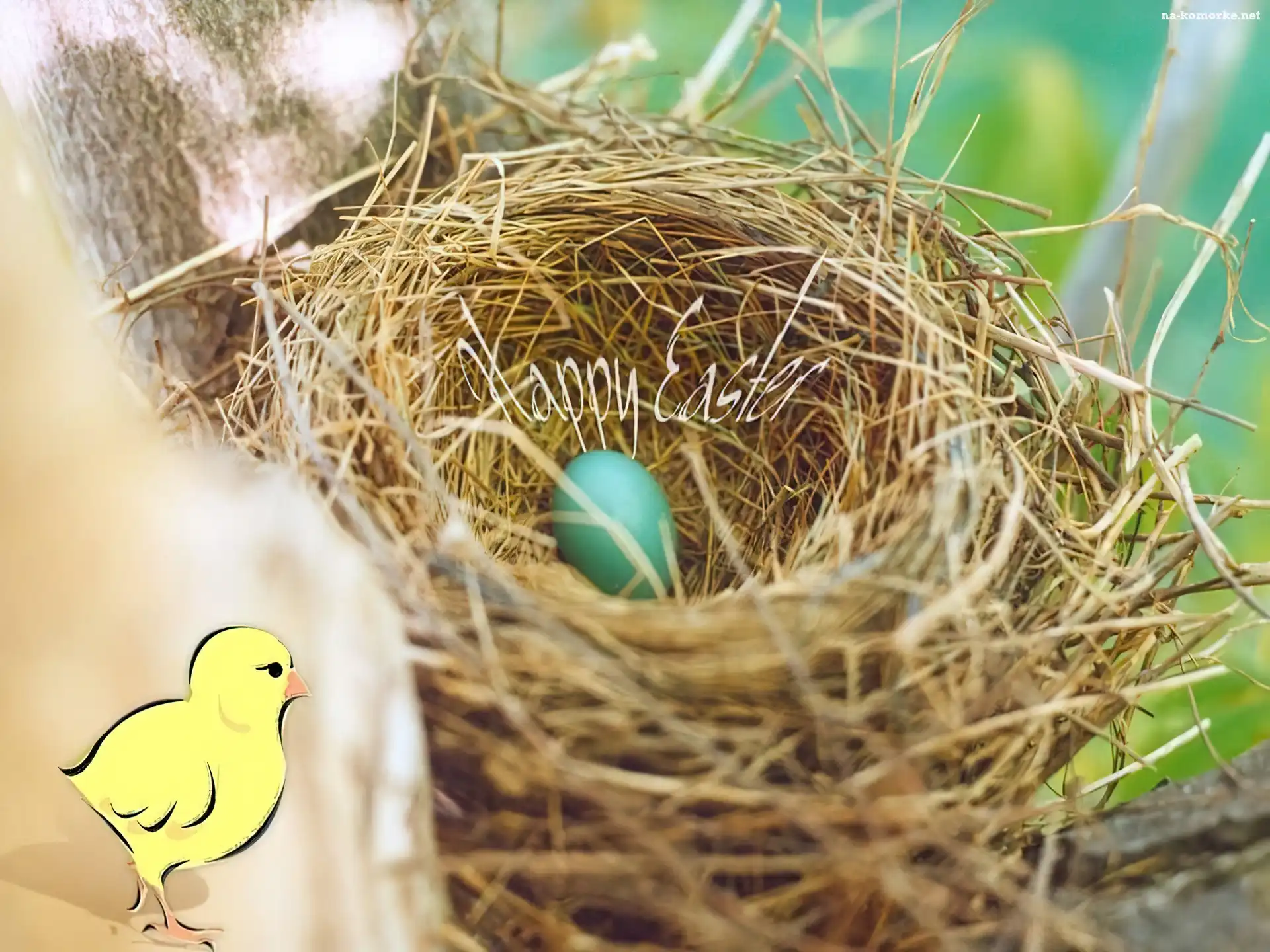 Wielkanoc, kurczaczek, gniazdo , jajko na Komórkę