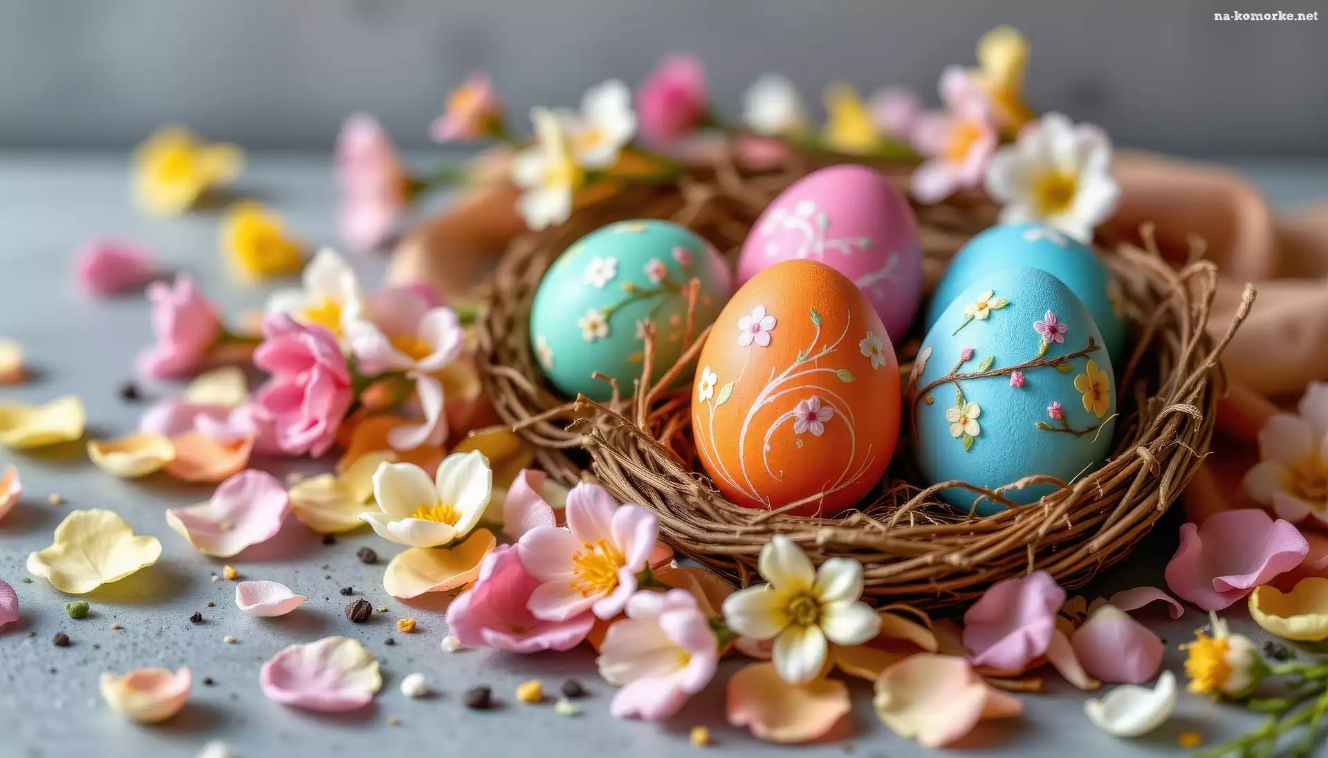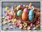 Płatki, Kwiaty, Kolorowe, Wielkanoc, Pisanki, Gniazdo, Jajka na Komórkę