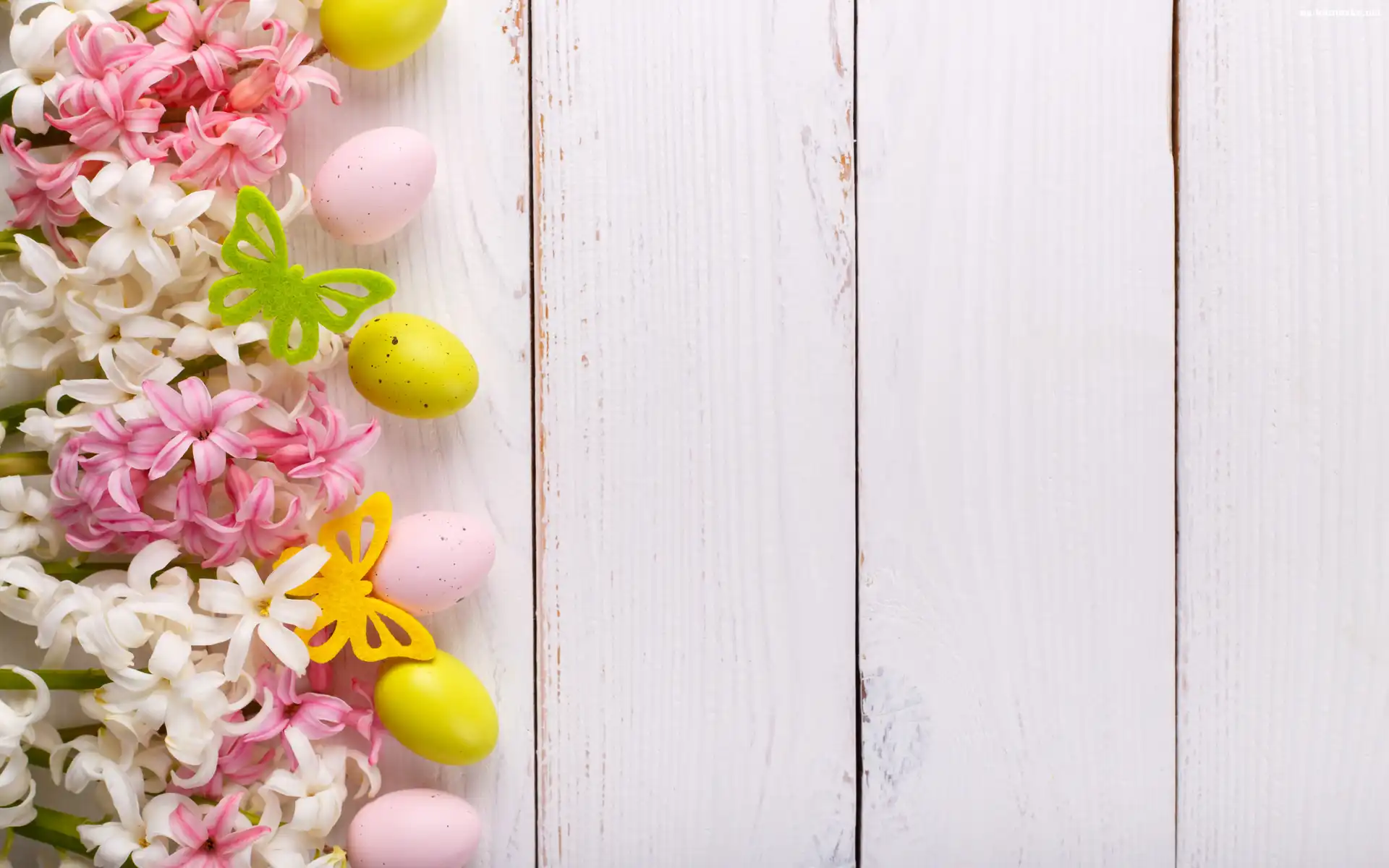 Wielkanoc, Pisanki, Hiacynty, Motylki, Deski na Komórkę