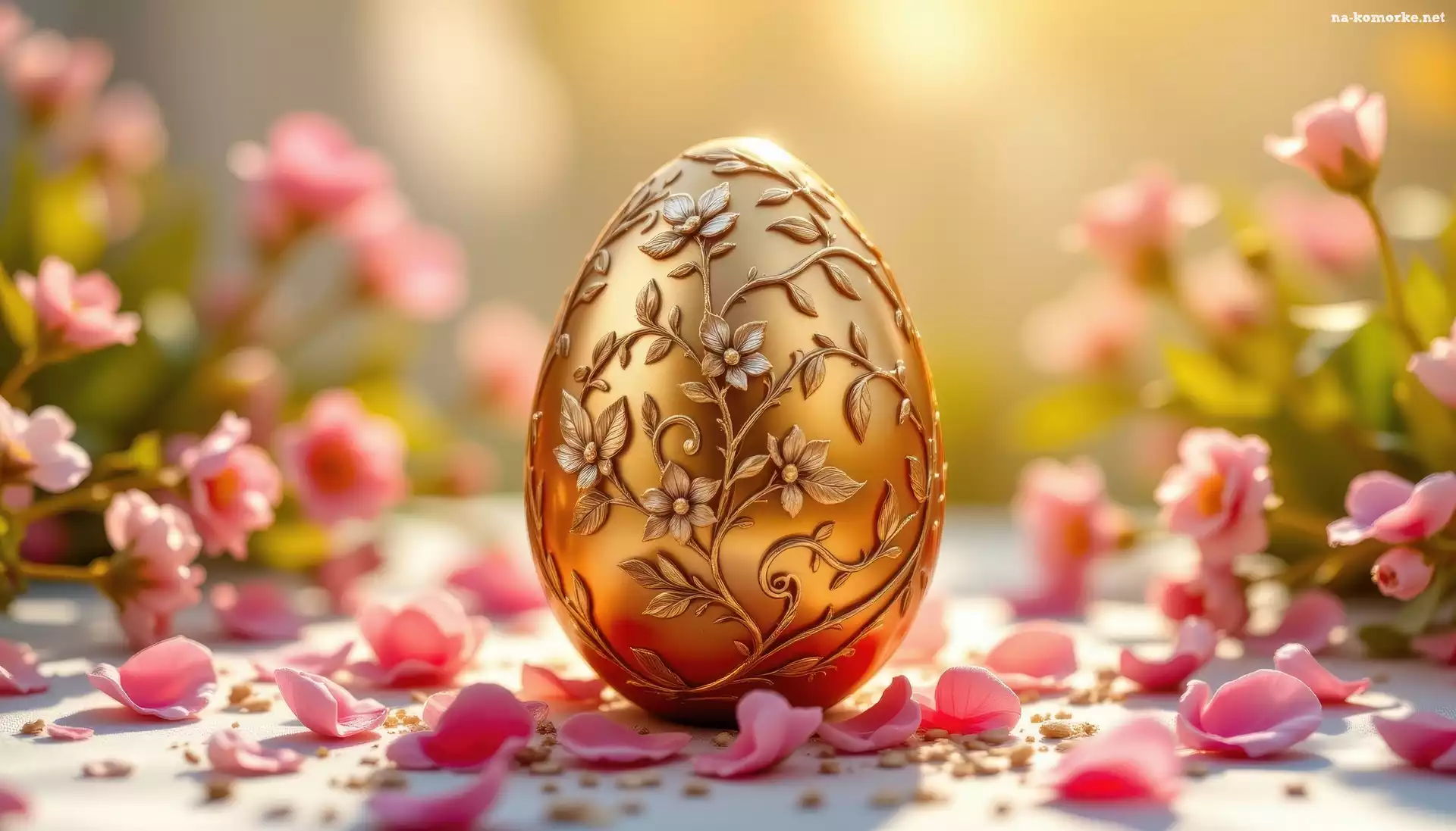 Płatki, Złota, Kwiatowy, Wielkanoc, Motyw, Pisanka na Komórkę