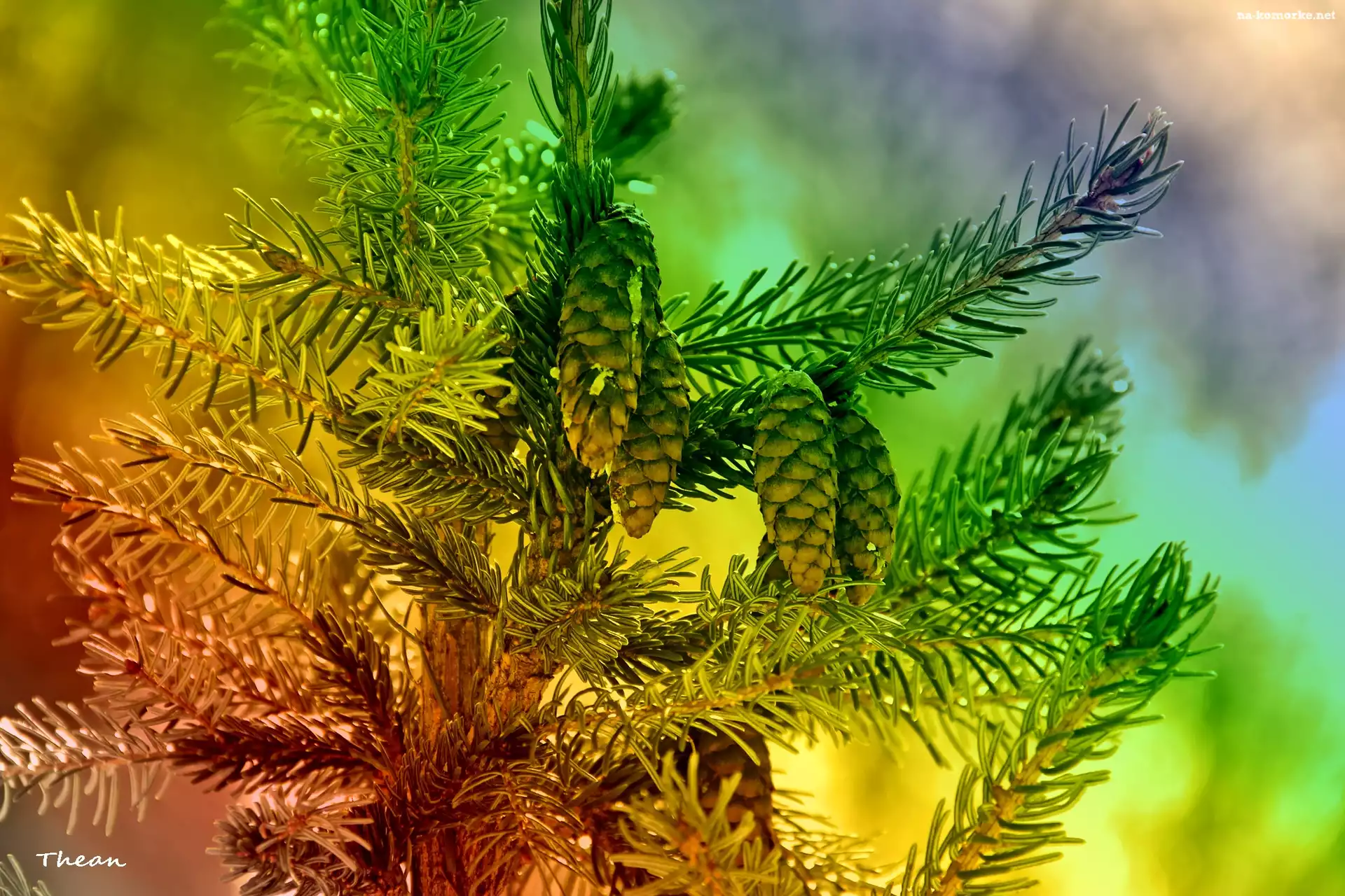 Kolorowy, Świerk, Szyszki na Komórkę