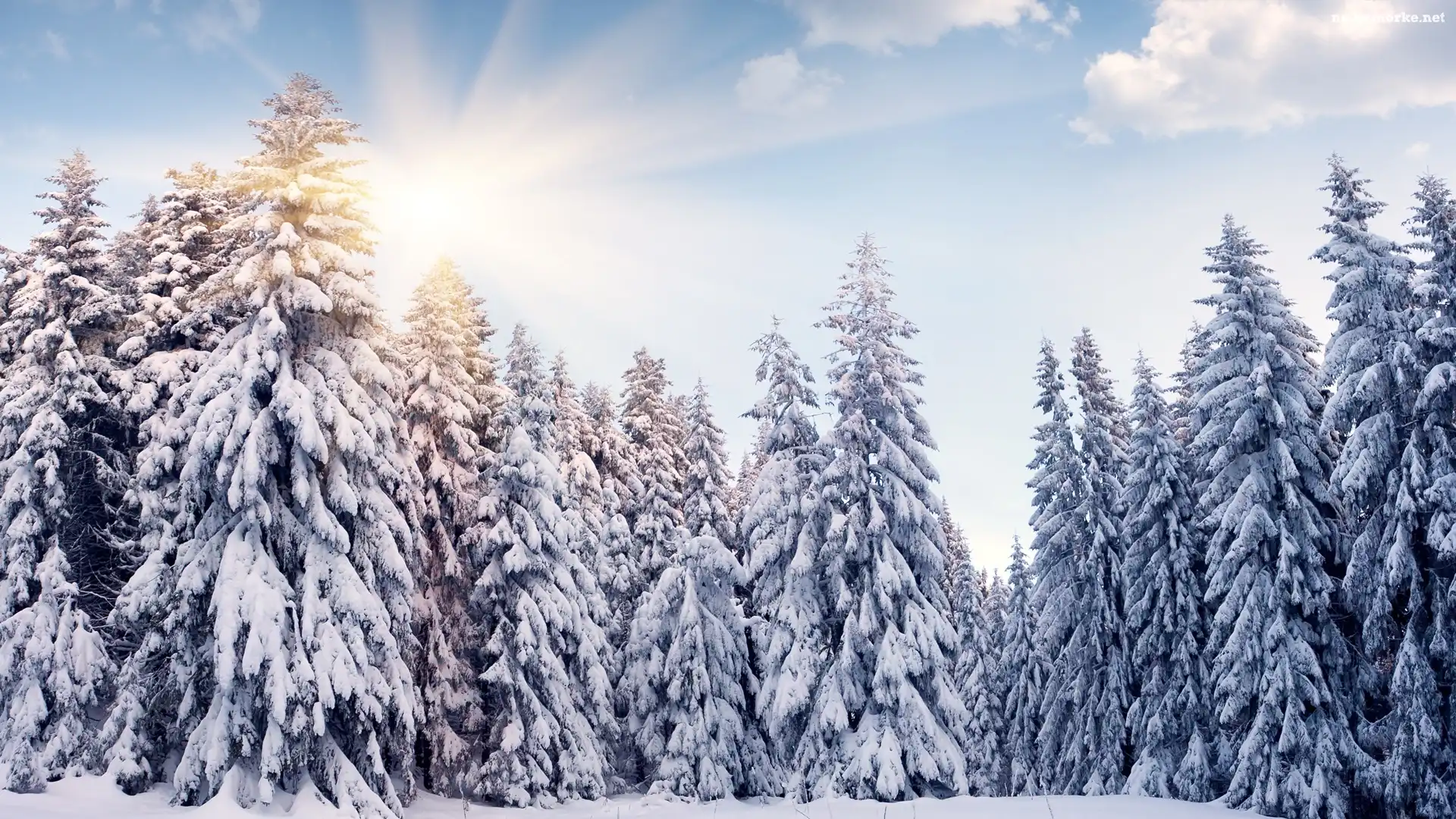 Świerki, Ośnieżone, Zima, Promienie słońca, Drzewa, Las na Komórkę