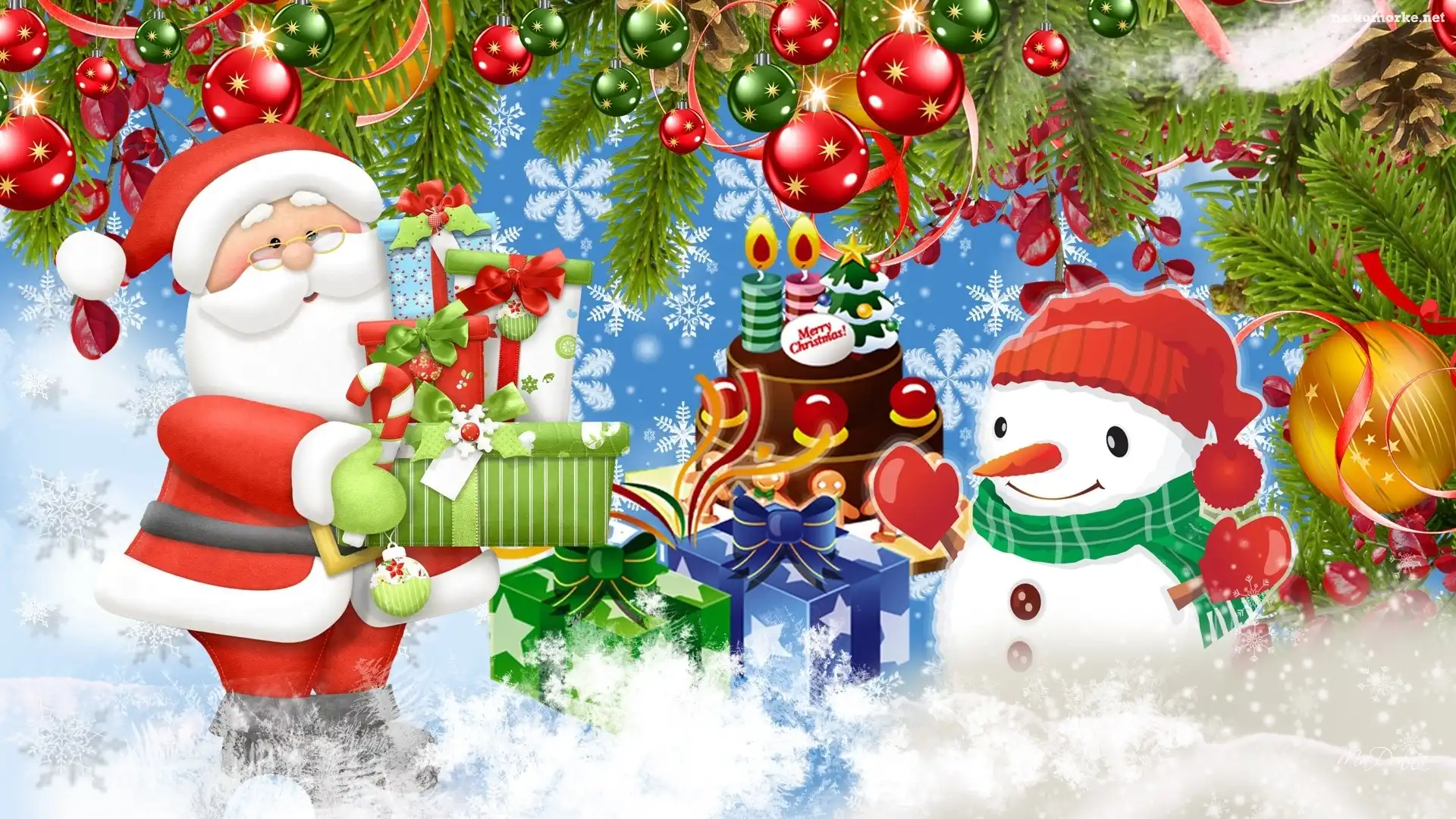 Kolorowa, Mikołaj, Święty, Grafika, Szron, Gałązki, Prezenty, Świąteczna, Tort, Bałwanek, Bombki na Komórkę |