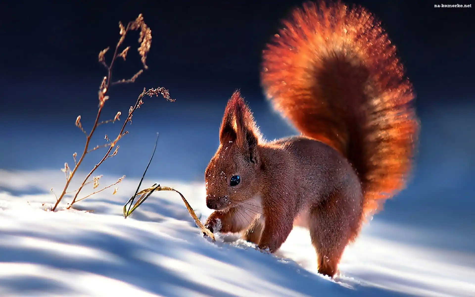 Wiewiórka, Trawa, Śnieg, Sucha na Komórkę