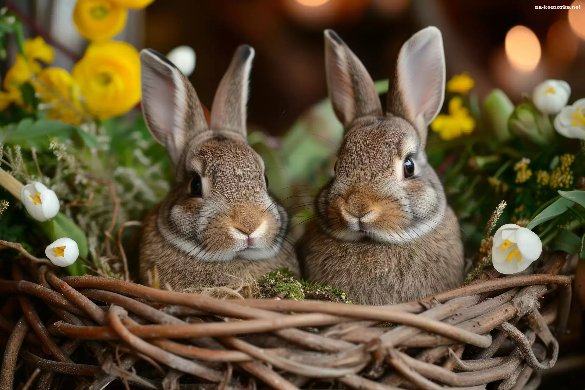 Dwa, Wiklinowe, Gniazdo, Króliki, Kwiaty na Komórkę