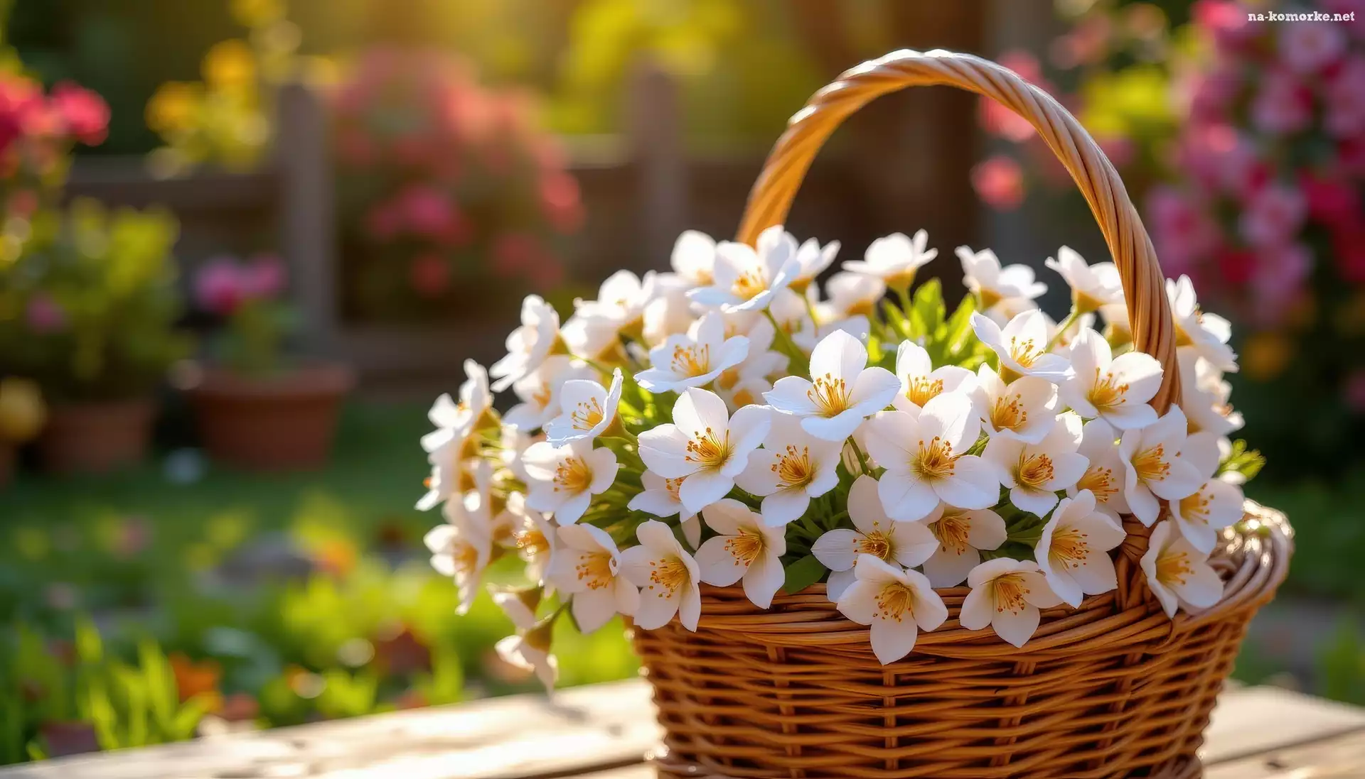 Białe, Wiklinowy, Koszyk, Kwiaty, AI na Komórkę