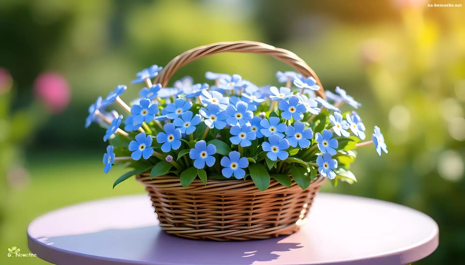 Niebieskie, Wiklinowy, Koszyk, Kwiaty, Grafika na Komórkę