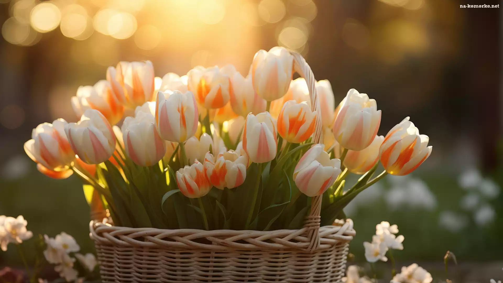 Tulipany, Koszyk, Kwiaty, Wiklinowy, Tulipany, Bukiet, Dwukolorowe na Komórkę