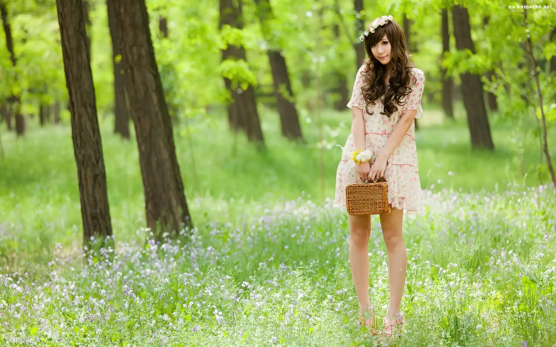 Lato, Wiklinowy, Las, Kuferek, Zielony, Kwiaty, Kobieta, Wianek na Komórkę