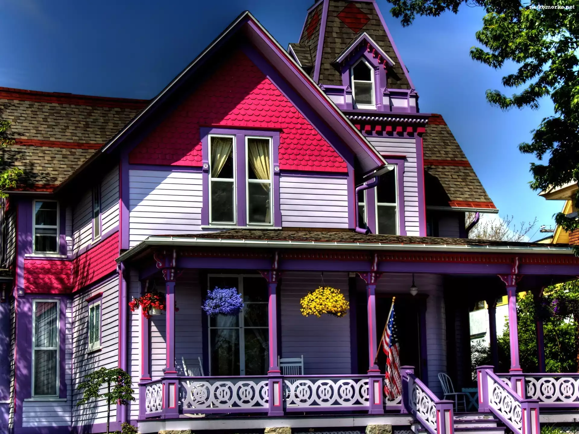 Wiktoriański, Różowy, Dom, Fioletowo na Komórkę