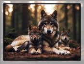 Wilki, Młode, Wilczki, Wilczyca, Grafika AI na Komórkę