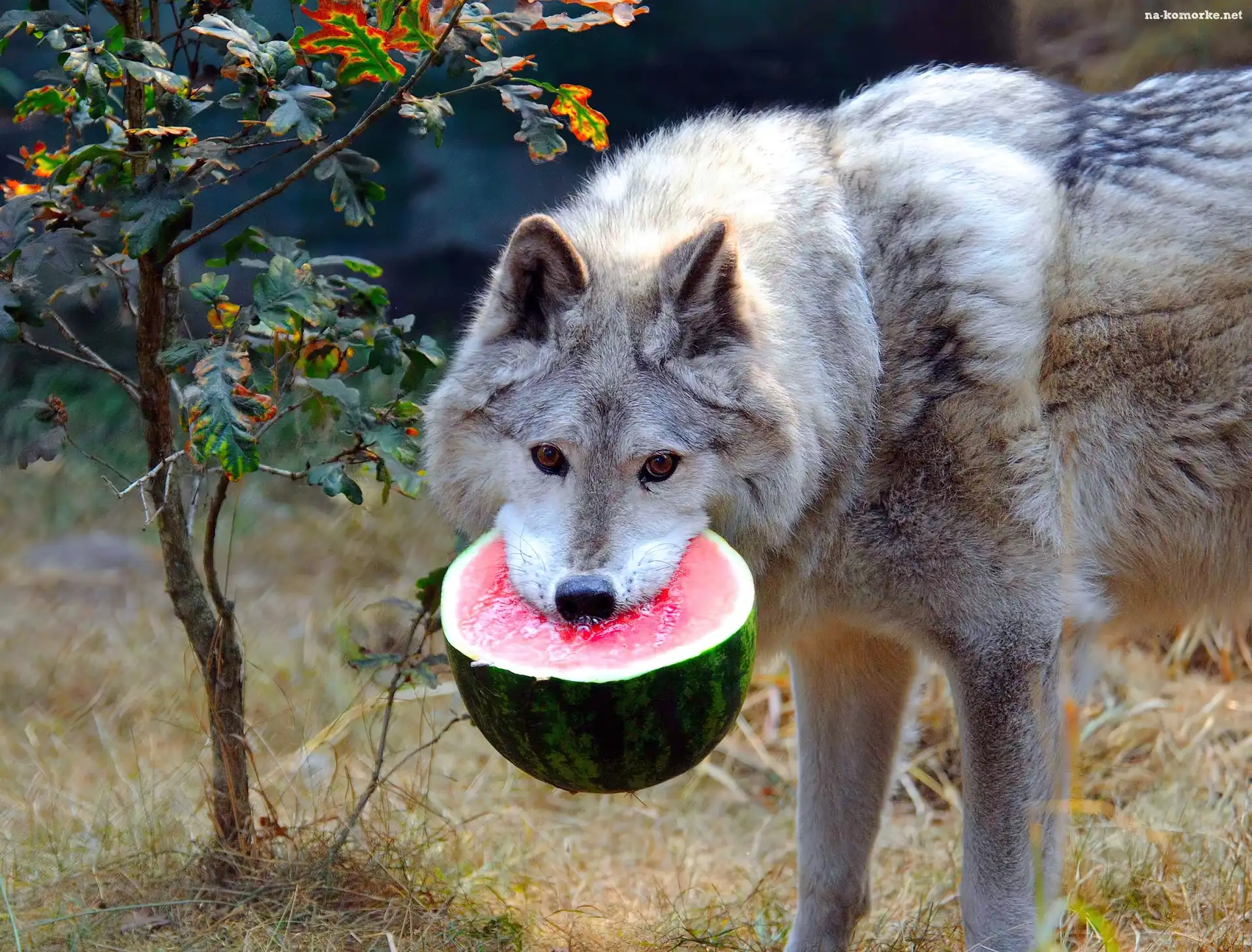 Wilk, Trawa, Drzewo, Arbuz na Komórkę