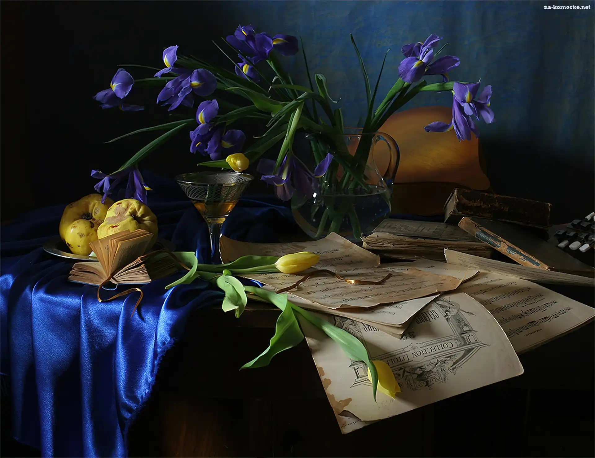 Wina, Kompozycja, Irysy, Tulipany, Lampka na Komórkę