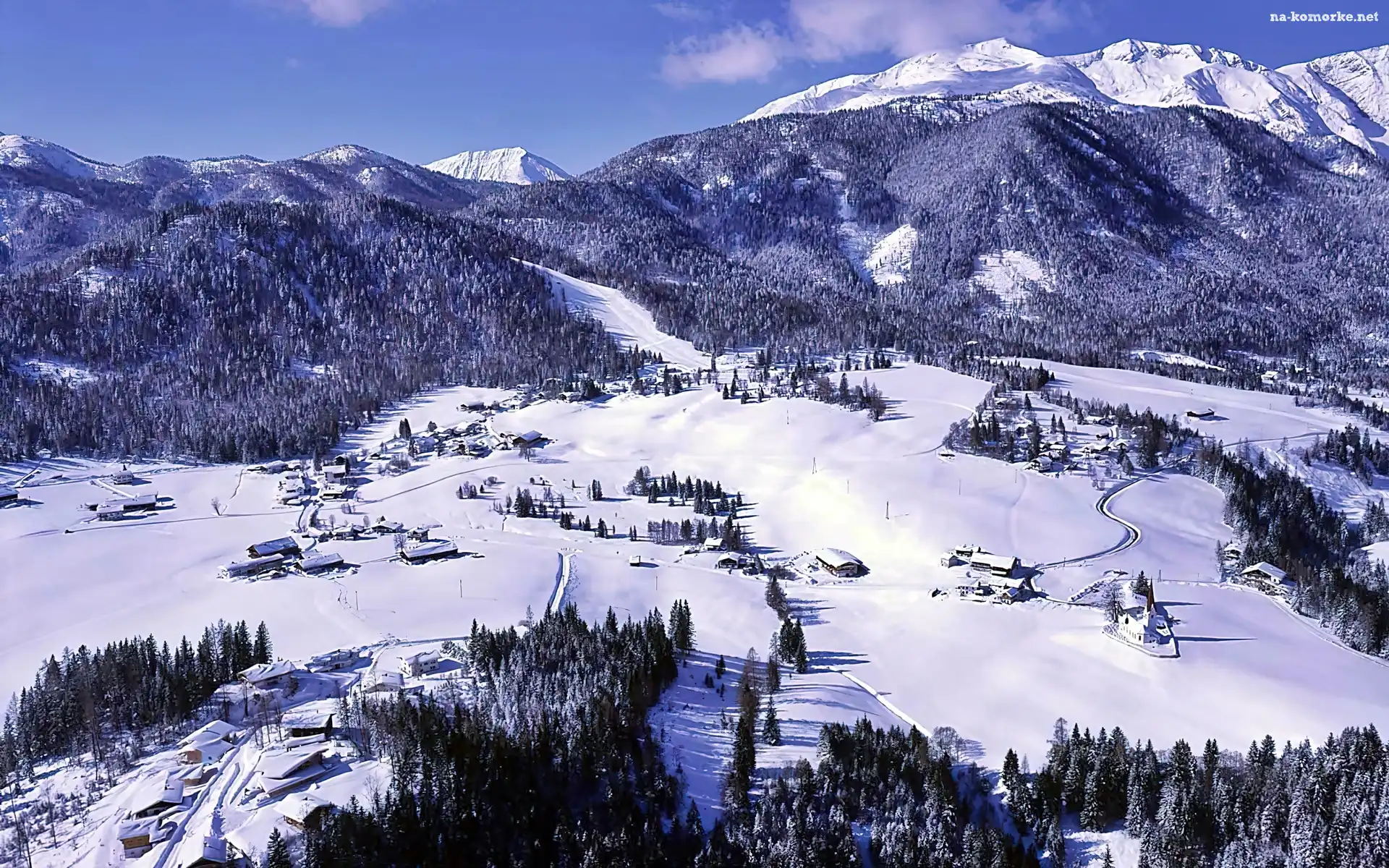 Wioska, Zima, Alpy, Lasy, Dolina na Komórkę
