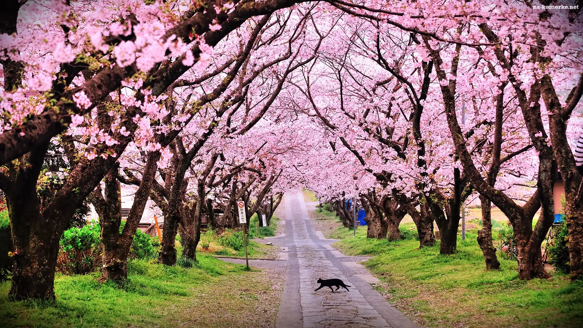 Wiosna, Droga, Kwitnące, Drzewa, Kot na Komórkę