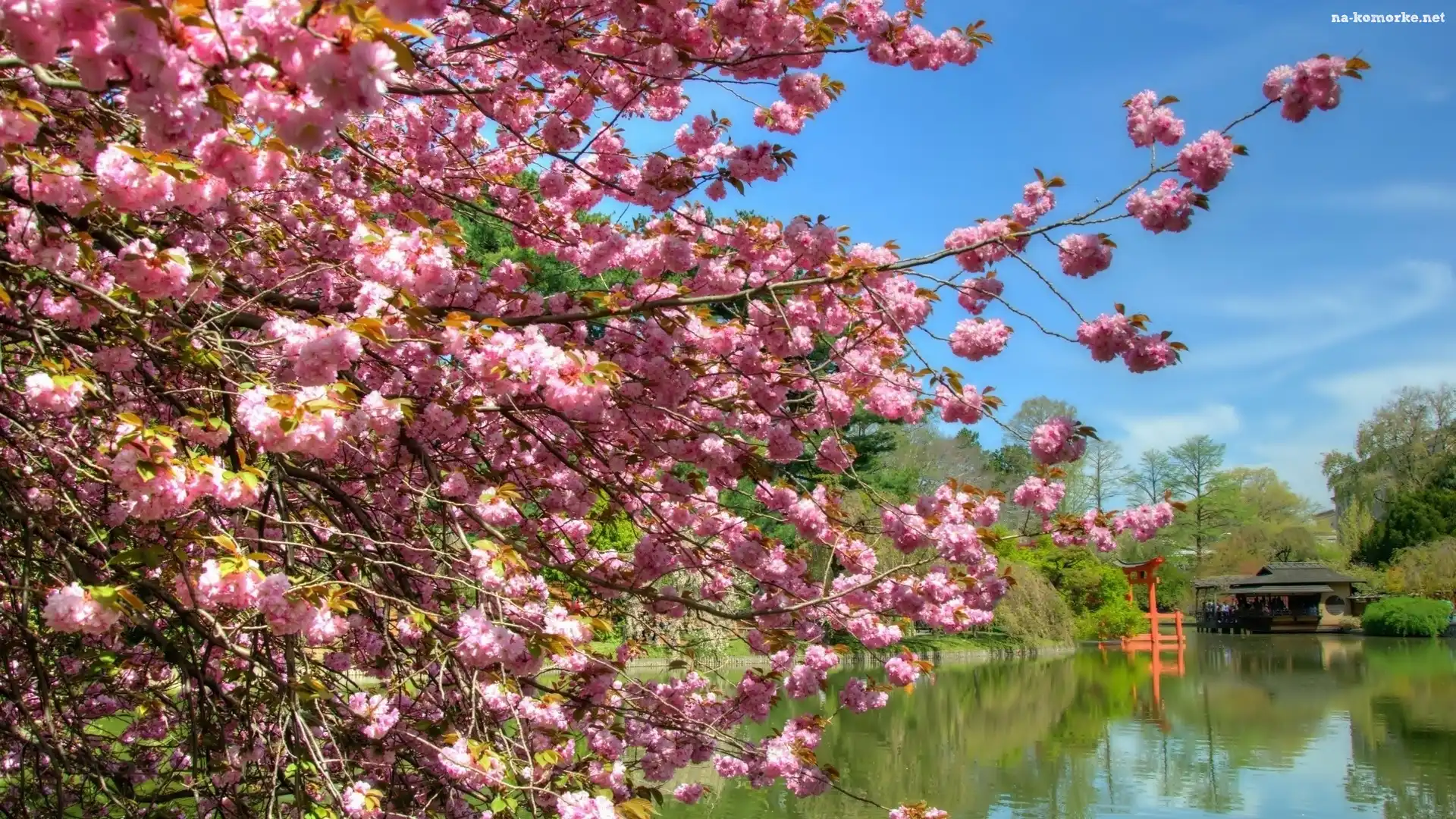 Wiosna, Jezioro, Las, Kwitnące, Drzewo na Komórkę