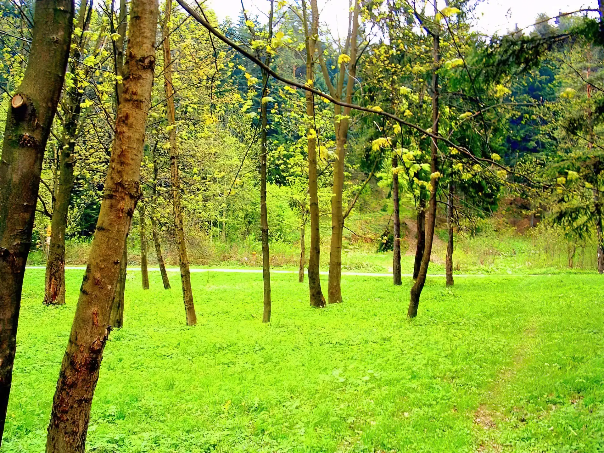Wiosna, Lasek, Zielona, Trawa na Komórkę