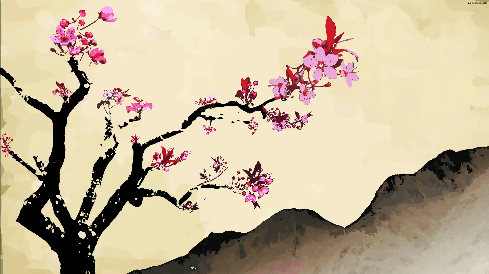 Kwiaty, Grafika, Różowe, Wiśnia, Gałązka, Drzewo na Komórkę