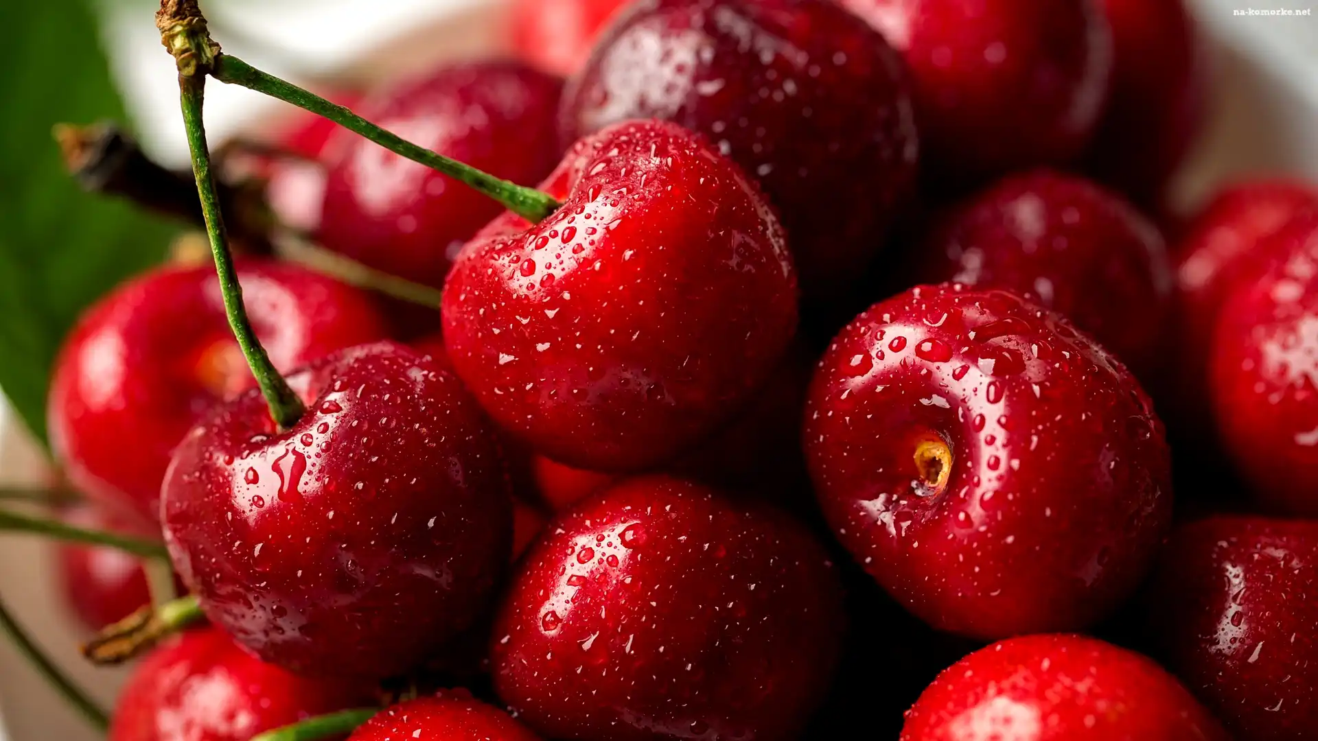 Wiśnie, Zbliżenie, Krople, Wody na Komórkę