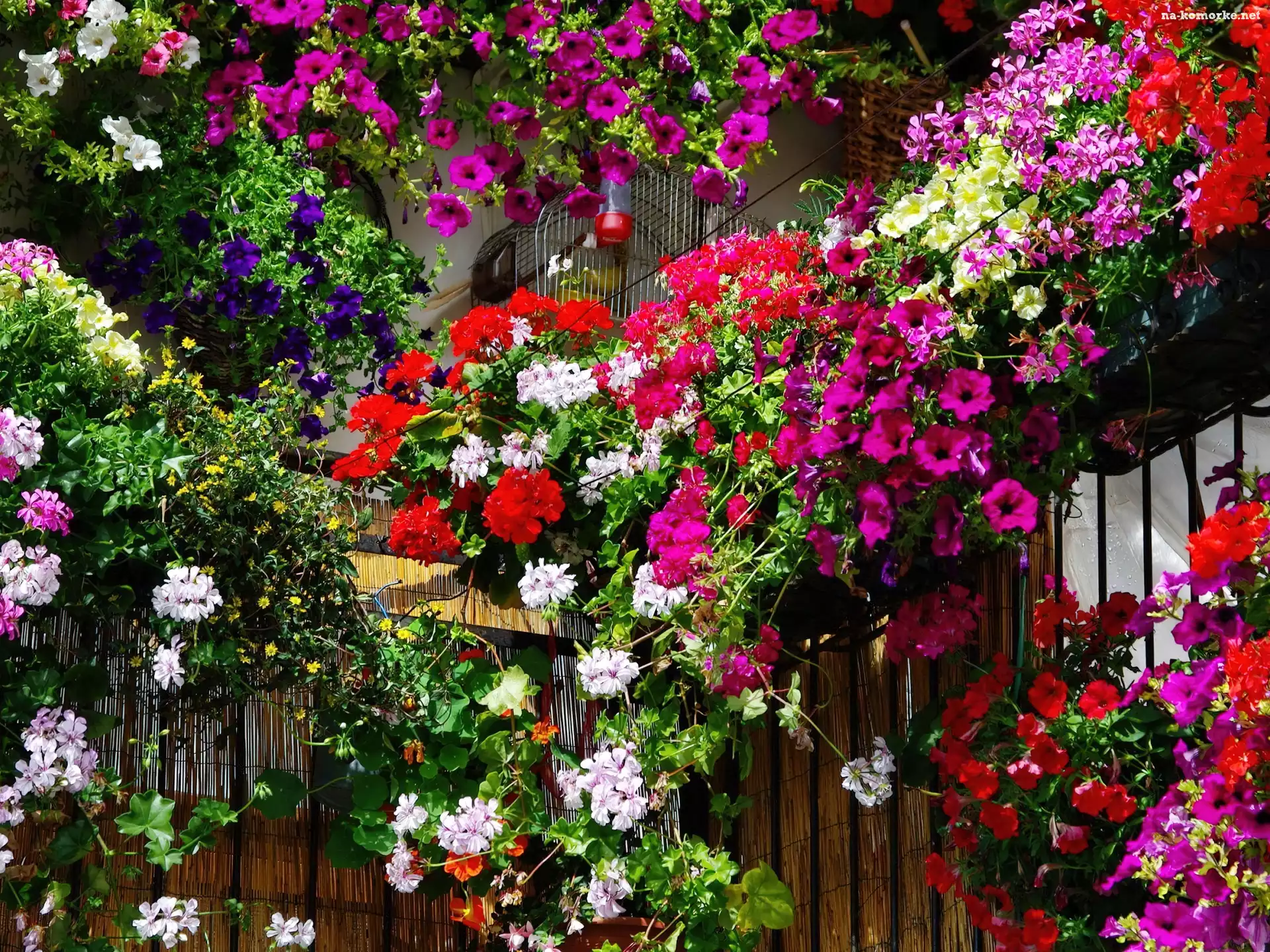 Wiszące, Balkon, Kolorowe, Kwiaty na Komórkę