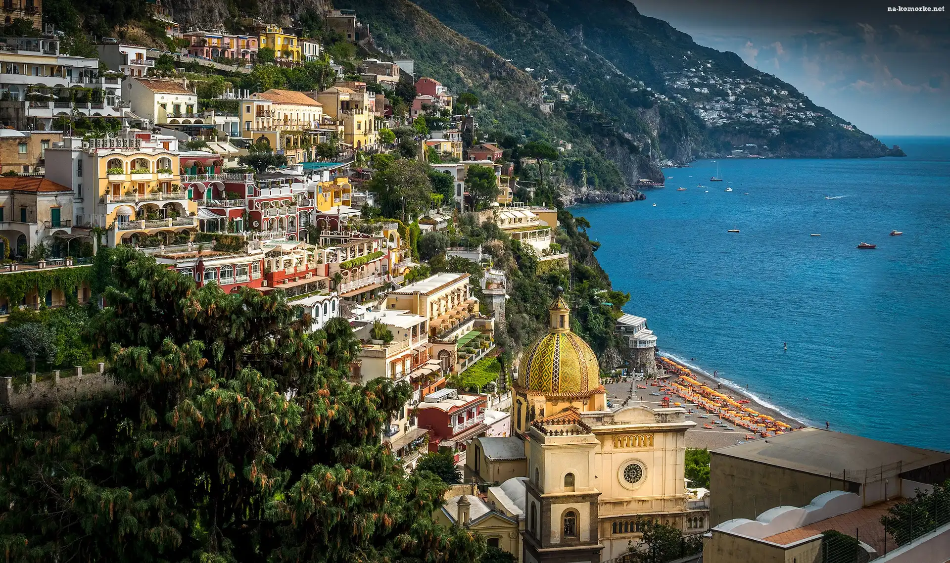 Włochy, Domy, Miasteczko Amalfi, Wybrzeże na Komórkę